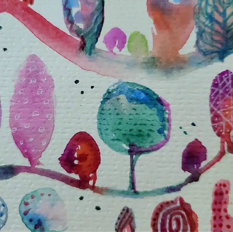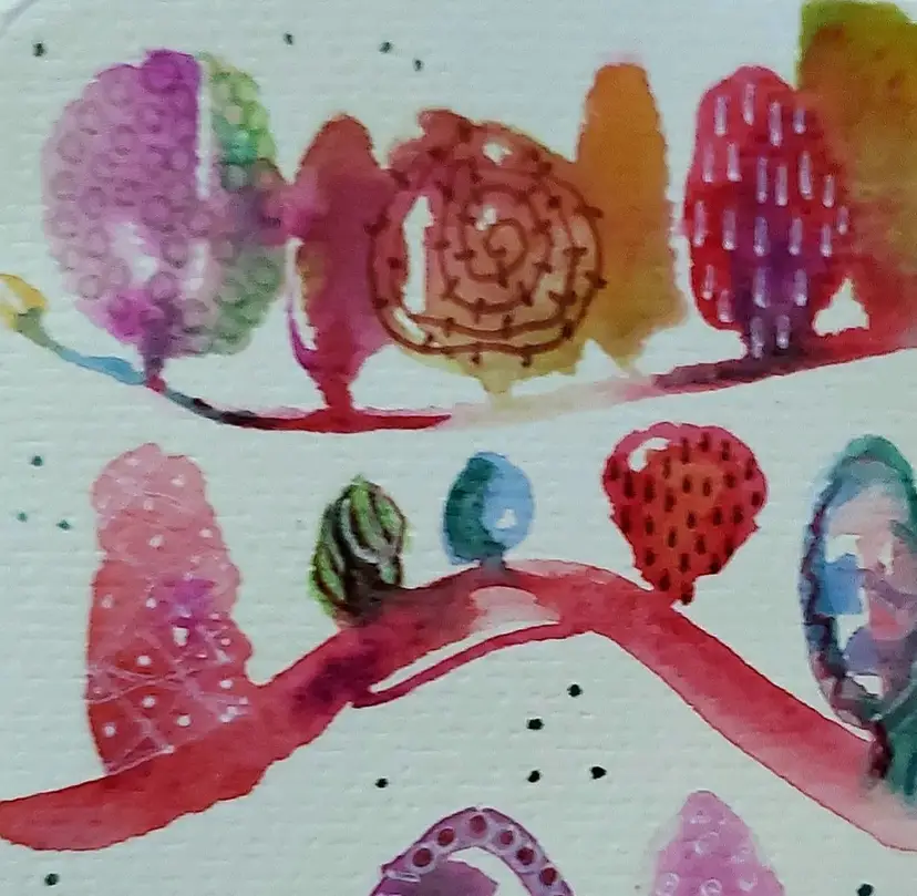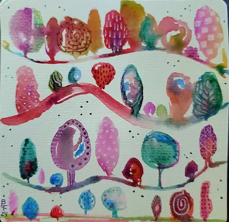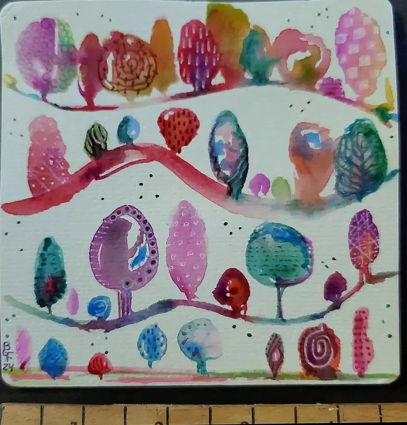OOAK Art Painting Watercolour Perfect Size For Art Wall Collection Gift Landscape Tree Colorful Simple & Charming. COA Included Certificate of Authenticity. Signed & Dated