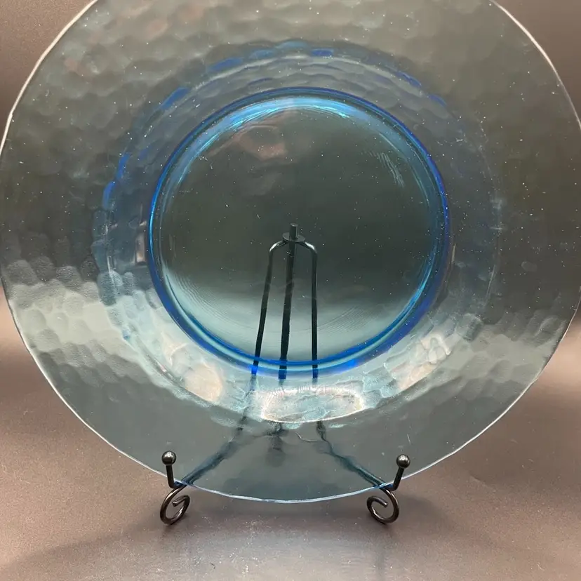 More like a shallow bowl than plate. Textured cubist pattern. From research, most likely French from 20th Century Hand blown
