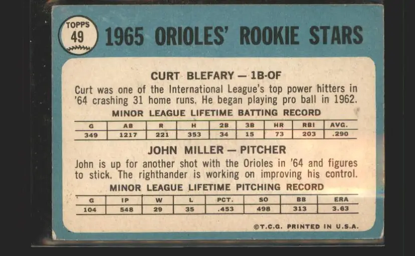 Orioles 1965 Rookie Stars (Curt Blefary / John Miller) 1965 Topps #49 - (140) - Baltimore Orioles