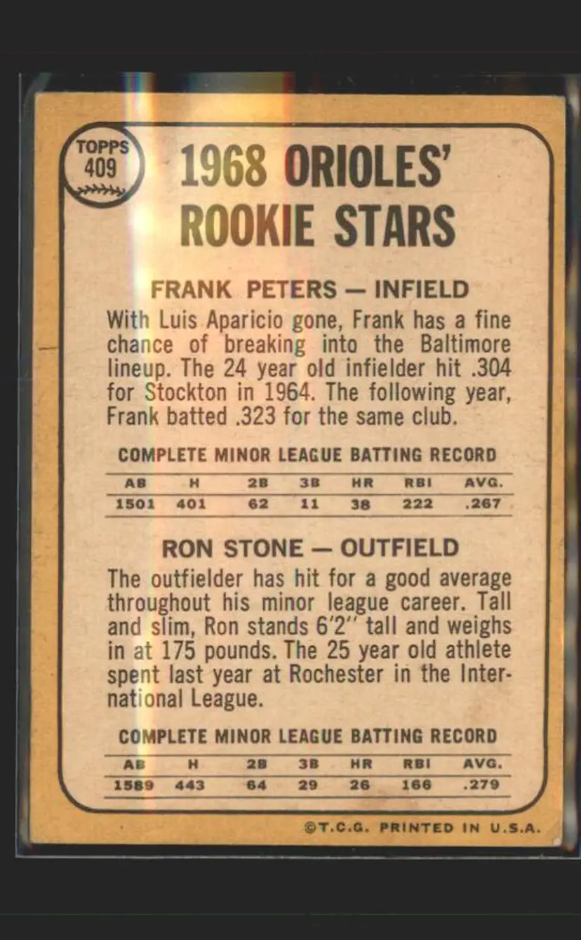 Orioles 1968 Rookie Stars (Frank Peters / Ron Stone) 1968 Topps #409 - (140) - Baltimore Orioles 2