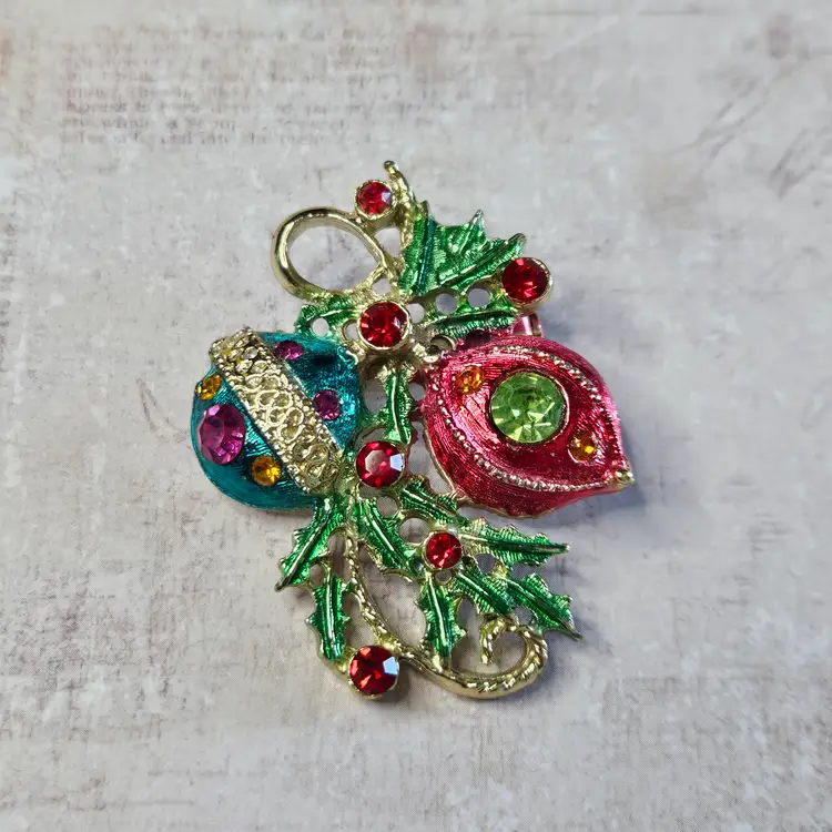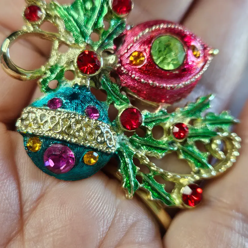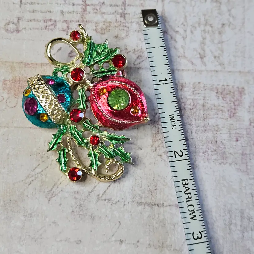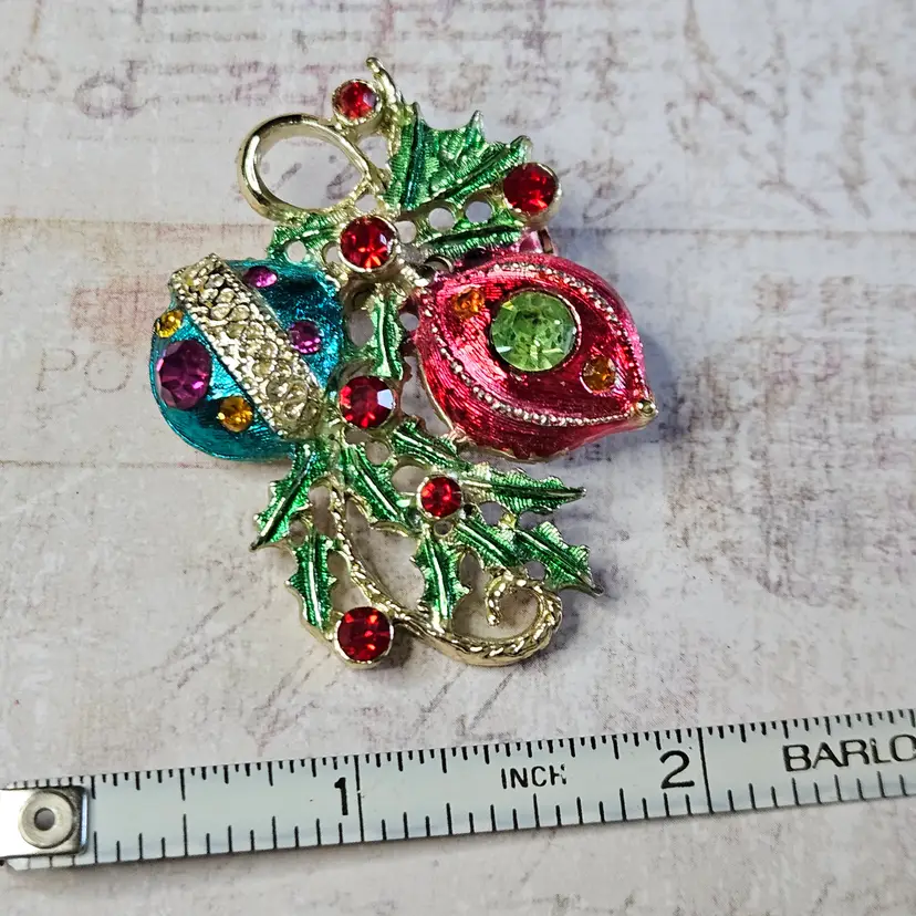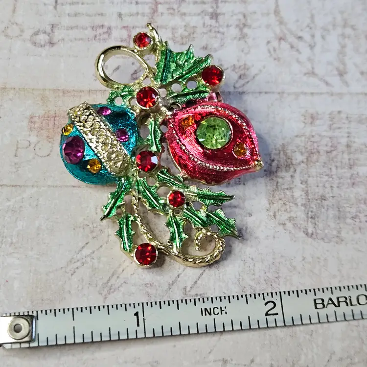 Unmarked with bright colored rhinestones all in place. Approx 2"