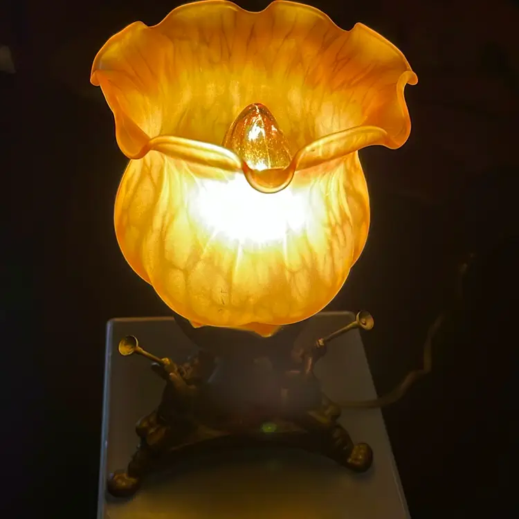 Lovely Accent Lamp. Pretty Amber Colored Original Shade. Toggle switch on the polarized cord.