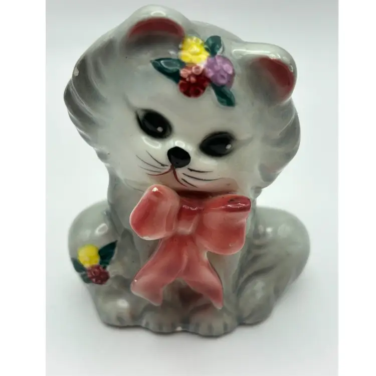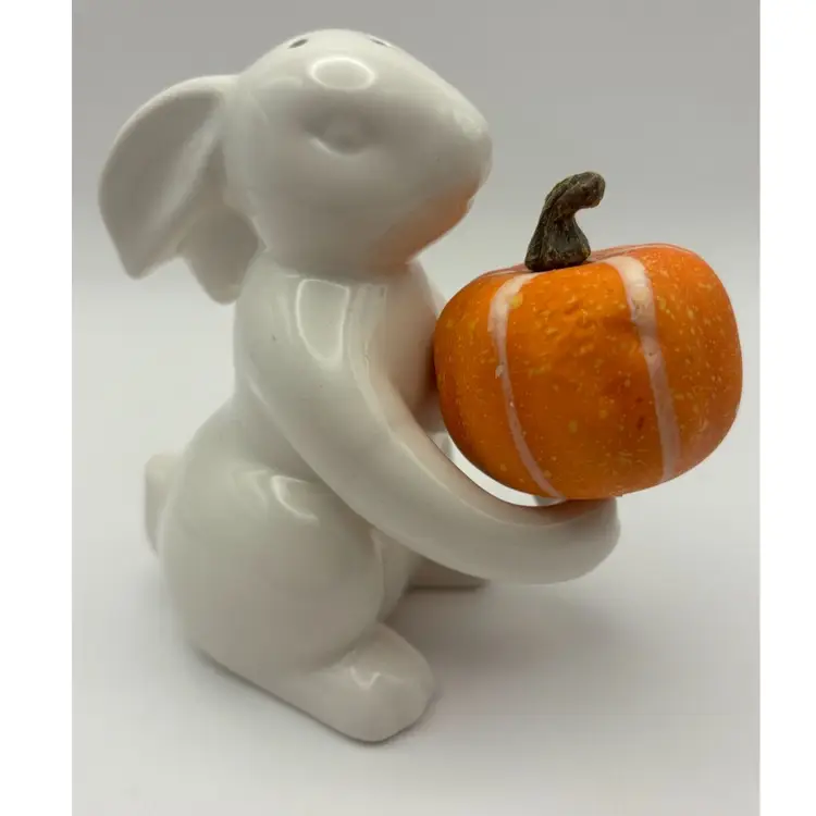 Great Lot of shakers for crafting, such as button bouquets. The kitty , seal , and wagon seem to be vintage and are missing stoppers. The kitty has a couple of very small flea bite paint chips. The bunny is a Pier One piece and is missing original carrot, so I gave him a pumpkin.