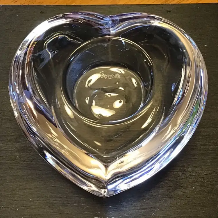 Beautiful heart tealight candle holder is in excellent condition. No chips, cracks, or, repairs. See pictures for size. See all pictures as they are an important part part of the description.