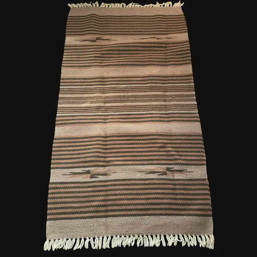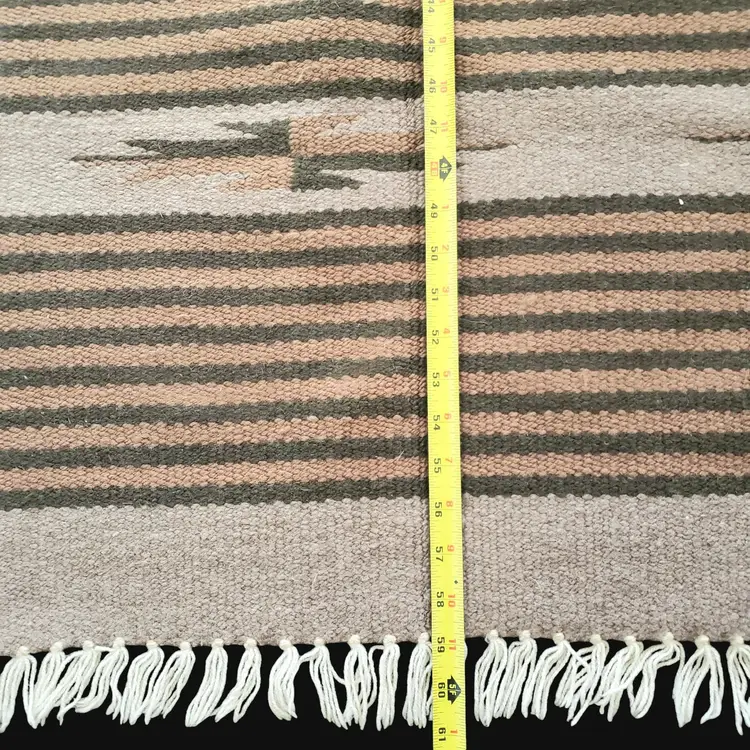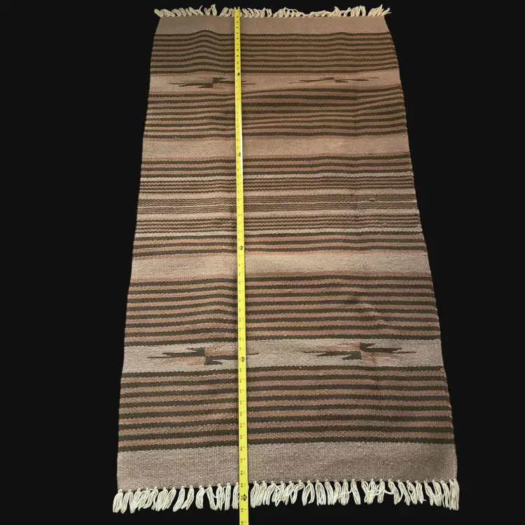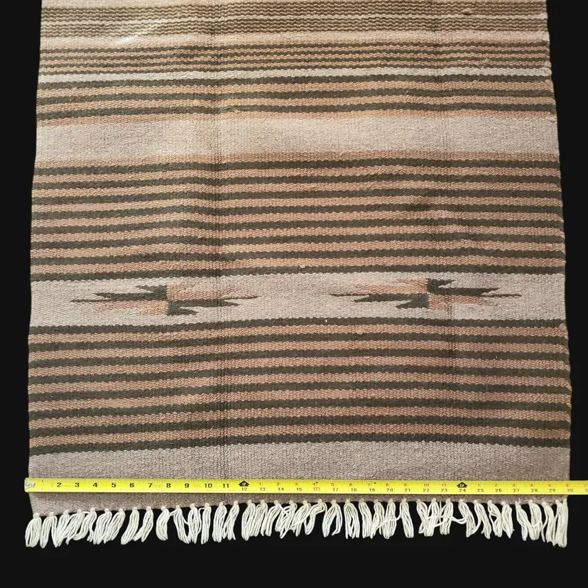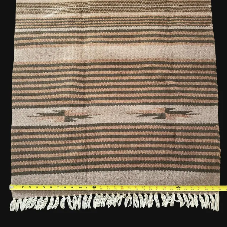 Ortega’s Weaving Shop Chimayo New Mexico 100% Wool Hand Woven 61" Long 30" Wide Approximately. Used condition no real signs of use other than folds. Please view all the photos and read the entire item description and please ask any questions prior to purchase when possible.