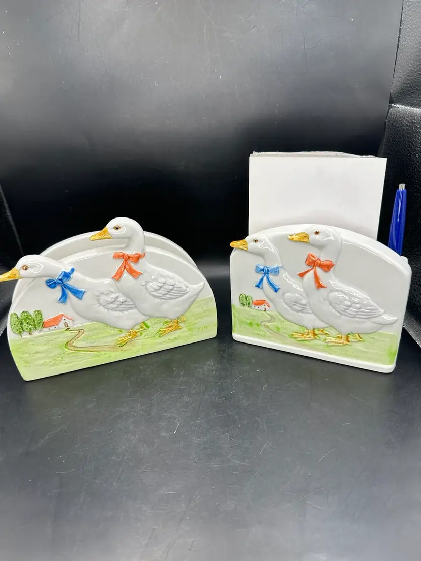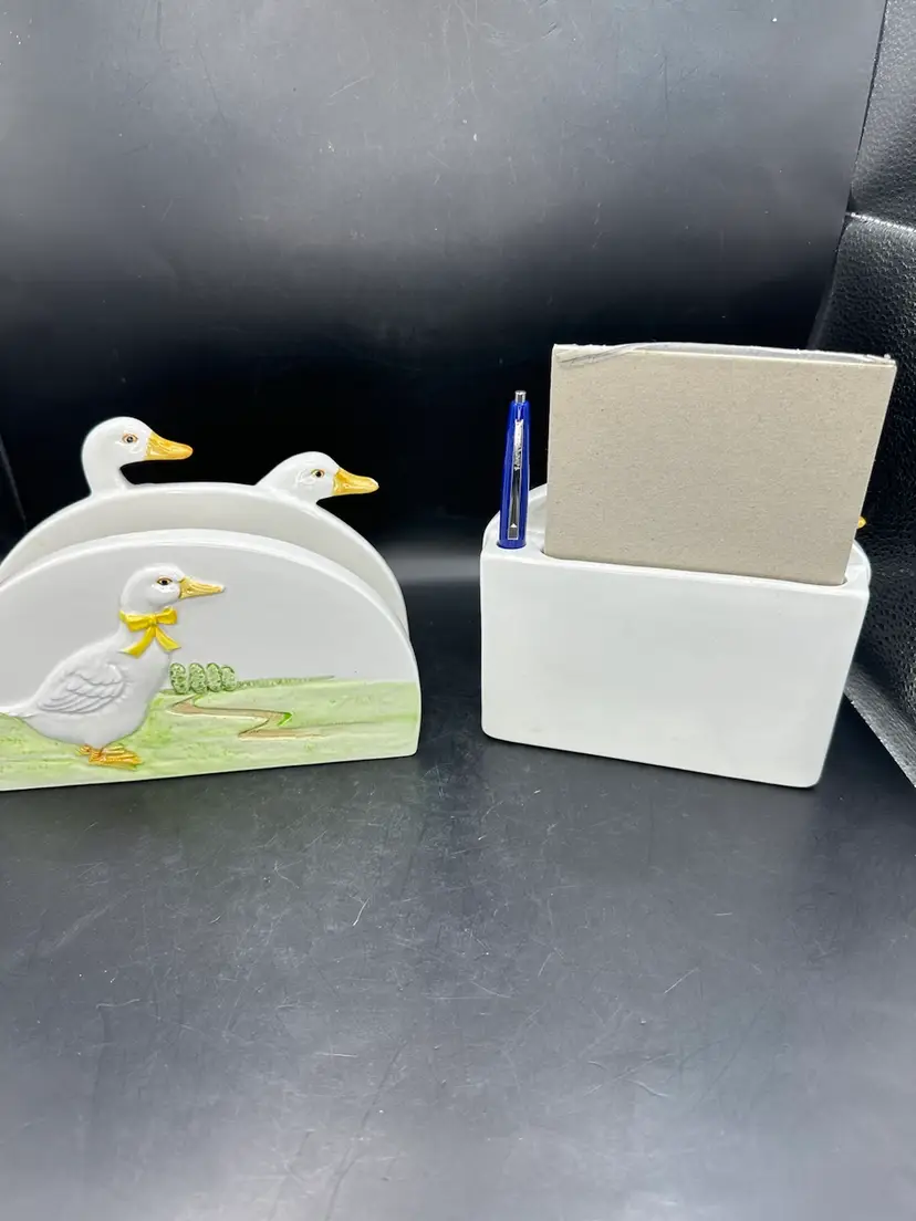 Small chip on one goose on letter holder 6 3/4" wide Memo/Pen holder is 5 1/2" wide