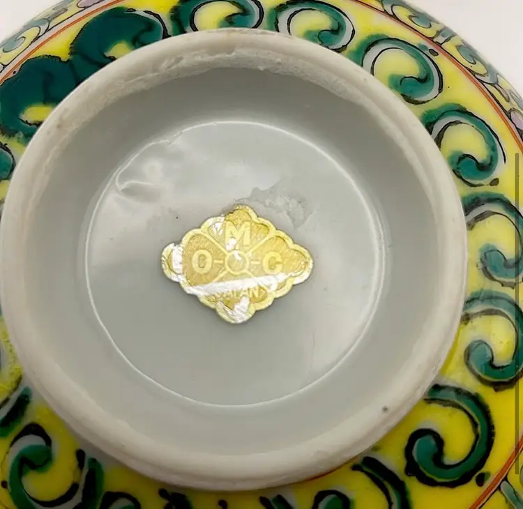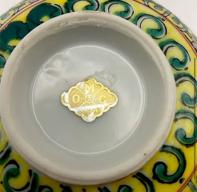 The emblem is a sticker found on items from the Otagiri Mercantile Company (OMC), a Japanese company known for producing decorative and household items, particularly in the 1970s and 1980s.