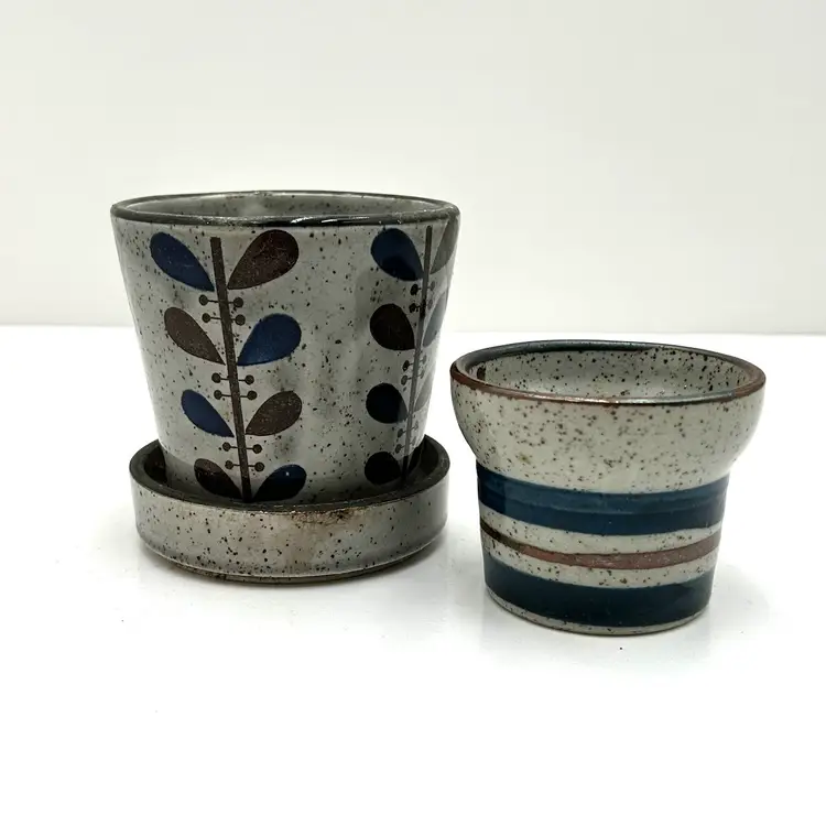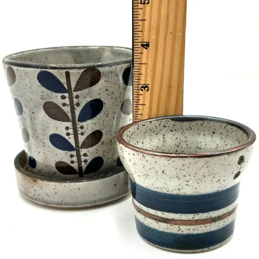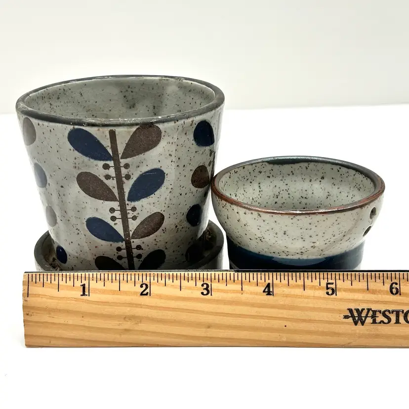 As shown Sizes vary- large 3.5 by 3.5 approximately Smaller - 2.25 by 3.25 Larger has small chip in top no cracks Smaller has no chips or cracks