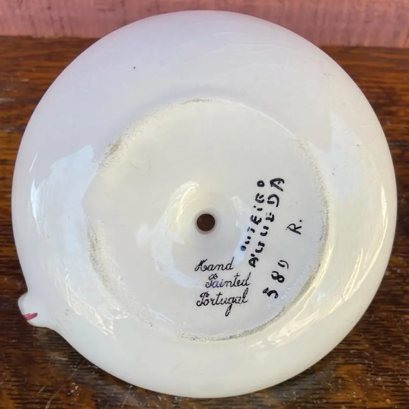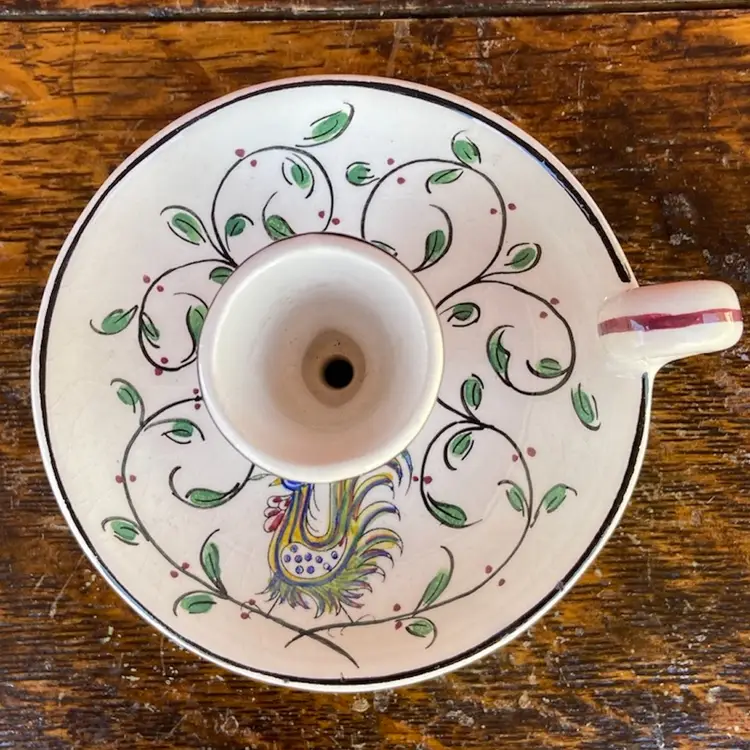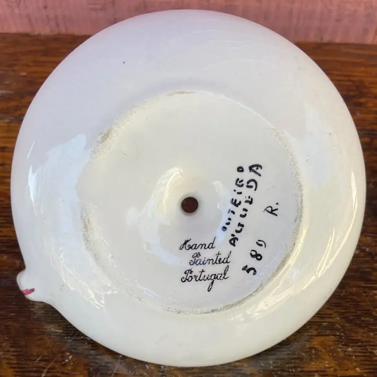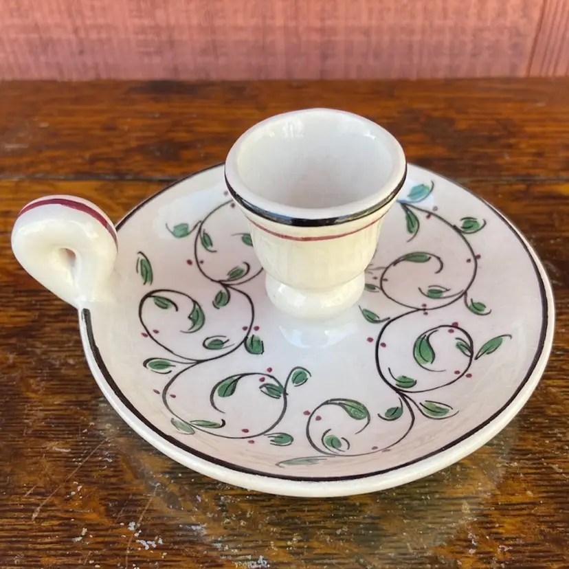 Approx 4.5”w with handle x 2”h (opening 1 1/16”). Pre-owned condition. No chips or cracks. Crazing. Some wax reside remains inside. See images as part of description.