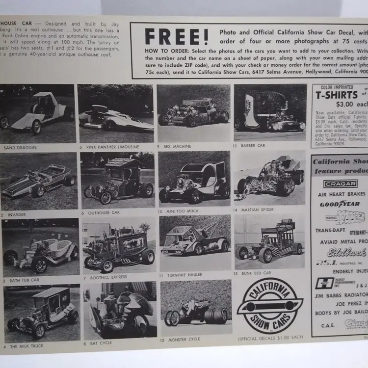 New old stock circa 1969 color photo. Part of a series of custom show cars by Jay Ohrberg. Back shows others in the series. Size is 10.25" x 8.25". Great color image ready for framing. Super gift for vintage hot rod fans. Size is 10.25" x 8.25".