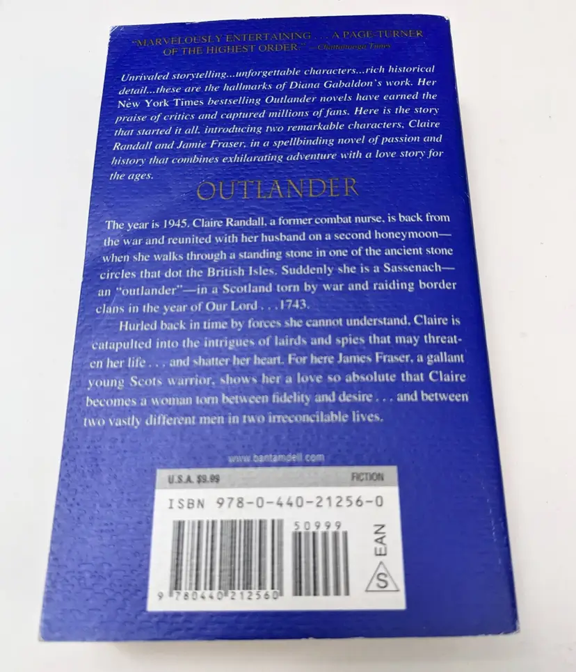 The year is 1945. Claire Randall, a former combat nurse, is back from the war and reunited with her husband on a second honeymoon—when she walks through a standing stone in one of the ancient stone circles that dot the British Isles. Suddenly she is a Sassenach—an “outlander”—in Scotland torn by war and raiding border clans in the year of Our Lord… 1743.