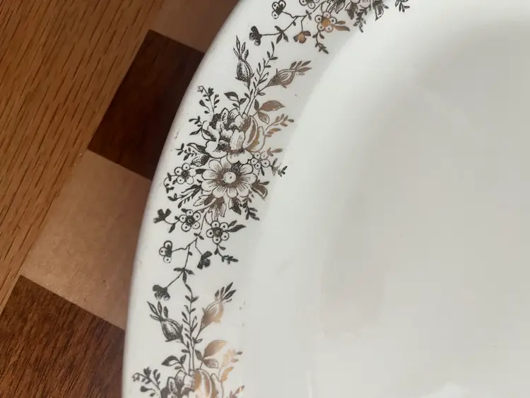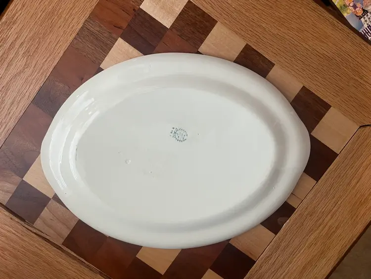 13 x 10 oval serving ironstone platter by Taylor, Smith & Taylor (Ts&T) pattern 1111 1-2 , gold floral around rim-1943 This piece is beautiful !