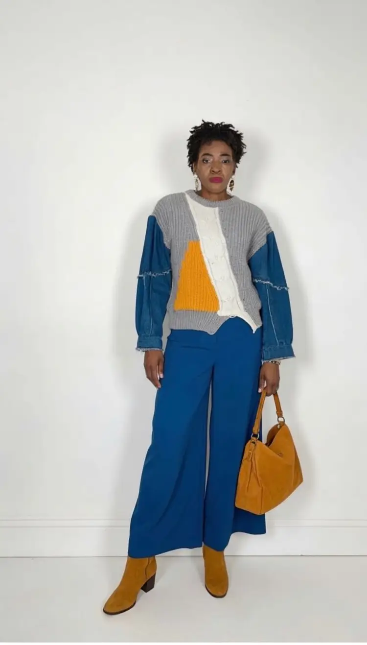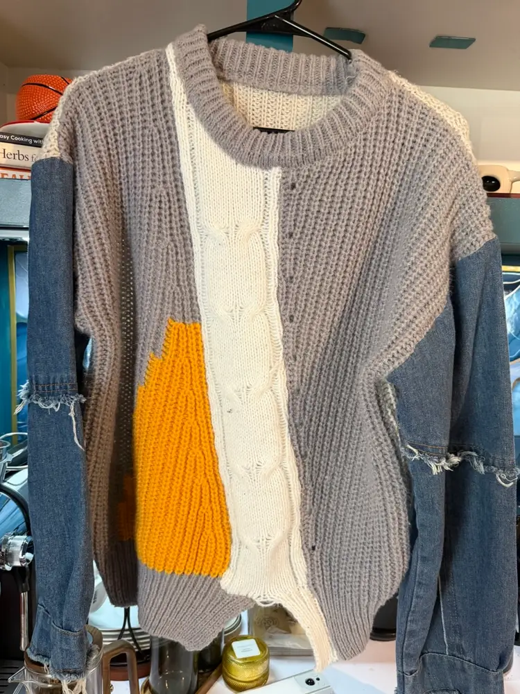 One Size fits all Preloved Sweater denim sleeves fits up to XL