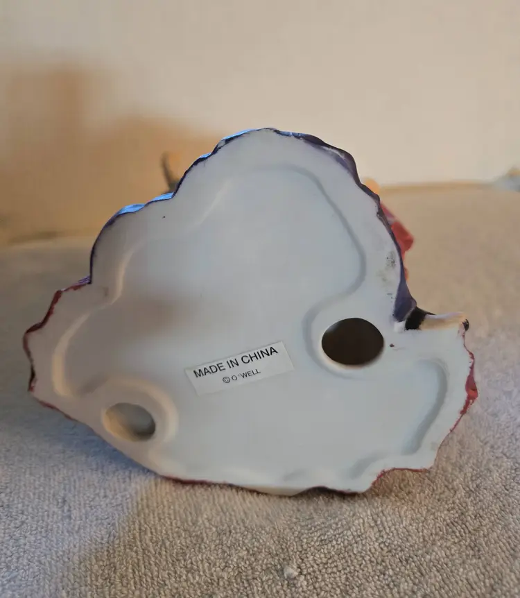This is a hand painted ceramic Christmas angel praising. Beautiful Figurine that will add a perfect touch to your Christmas decor. Made in China. She stands 7 1/2" tall and is 4 1/2" wide. No chips, cracks, or repairs.