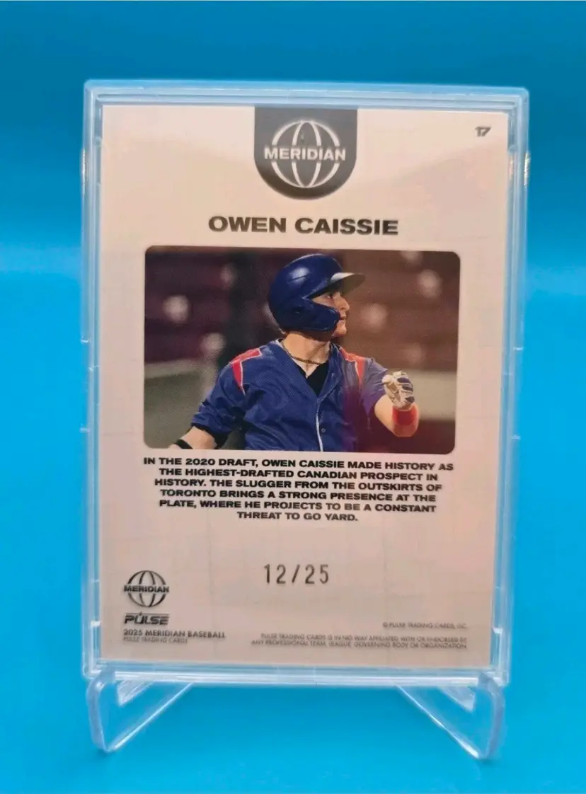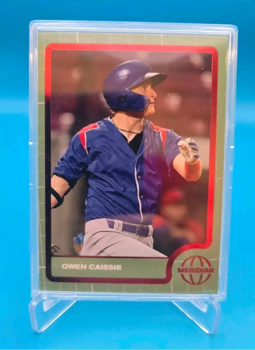 Owen Caissie red foil card /25. NM or better condition, encased. Stacked shipping applies.