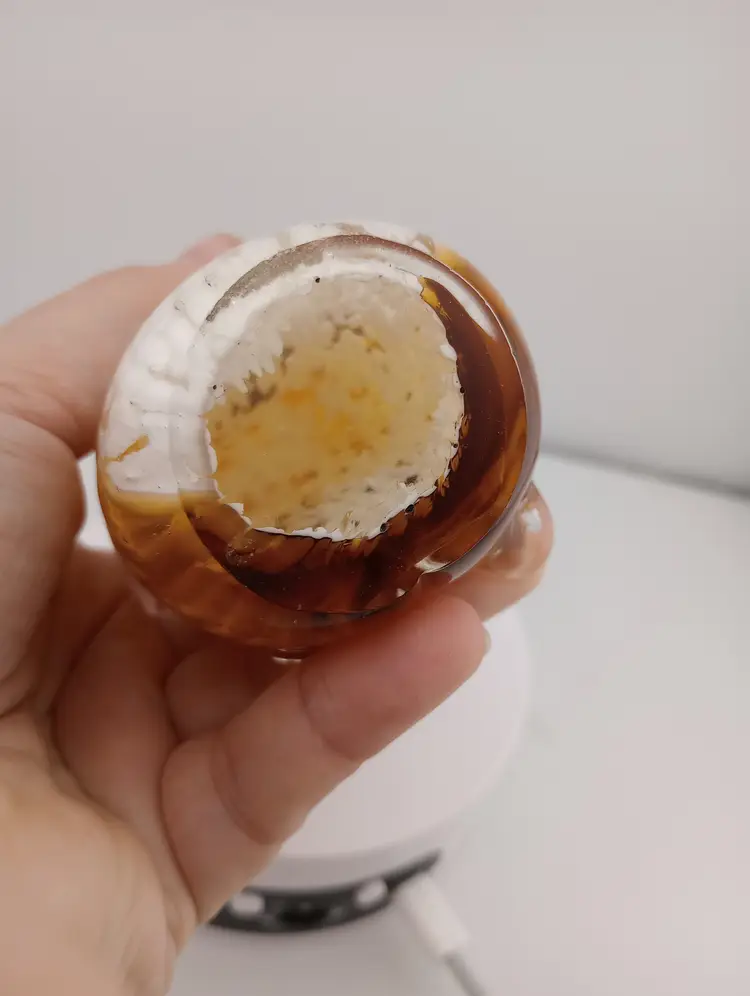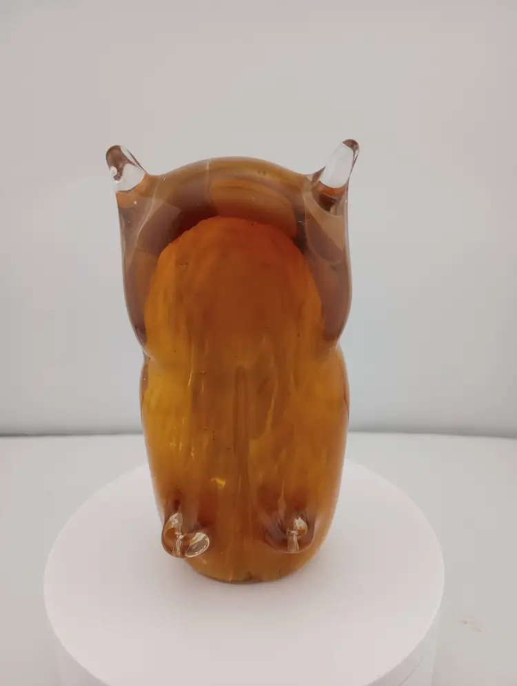 This is an adorable amber and white glass owl paperweight/figurine. It's in excellent condition with no noted flaws and is approximately 4.75" tall.