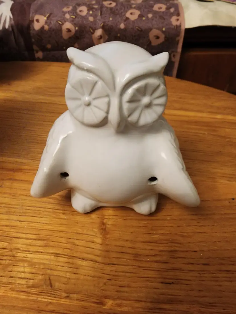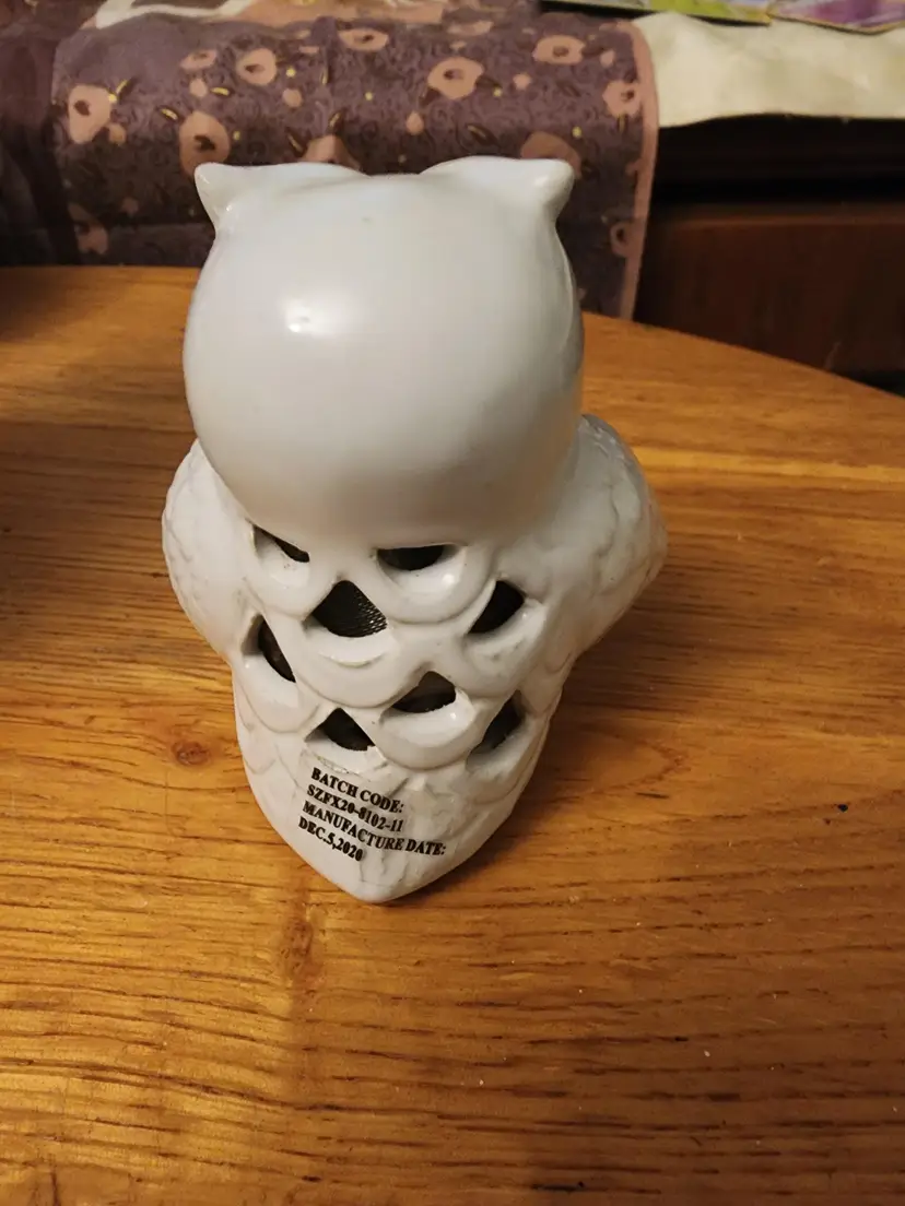 This owl is cute with its big eyes. On the back there are holes for the scent to escape. There is a hole in its bottom for you to put potpourri in the baggy and to place it inside. This is a great addition to your collection.