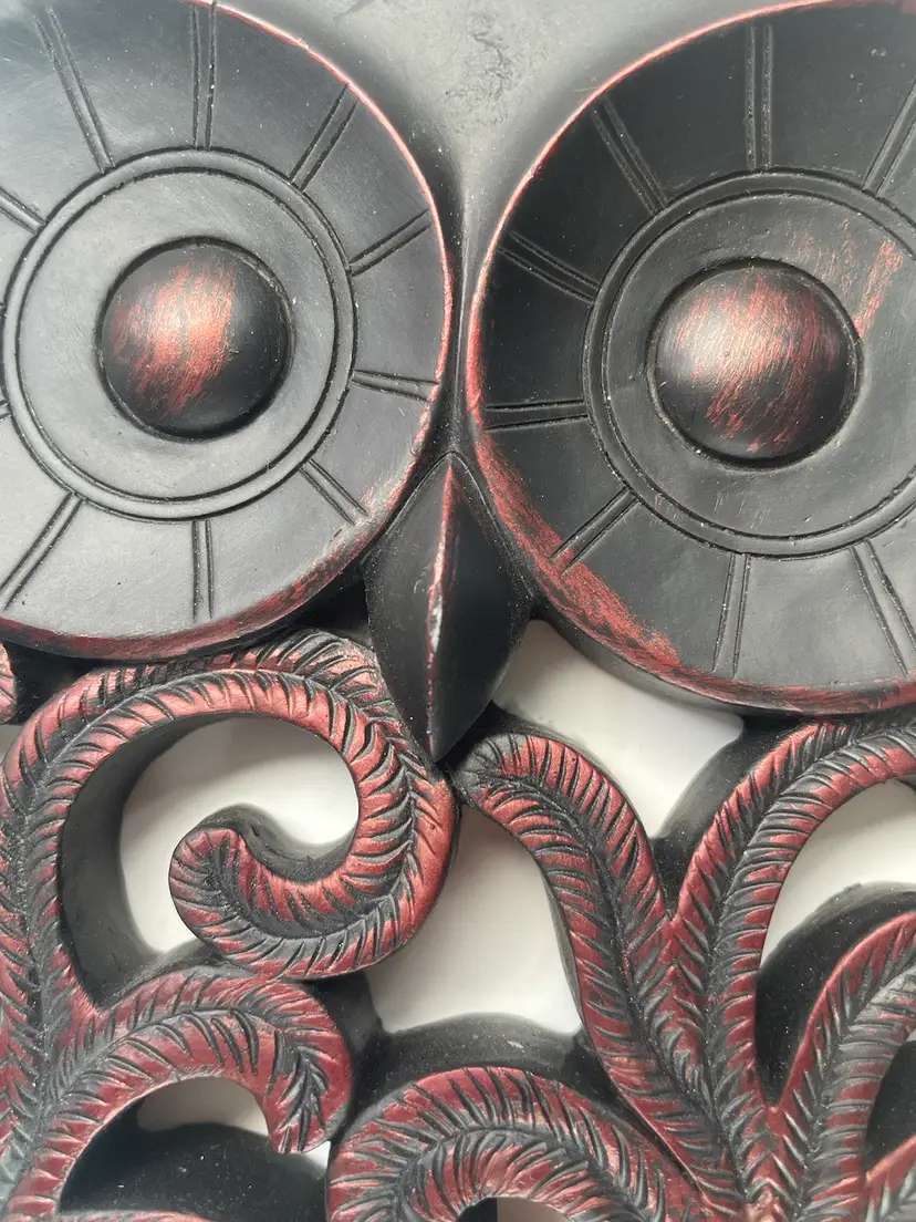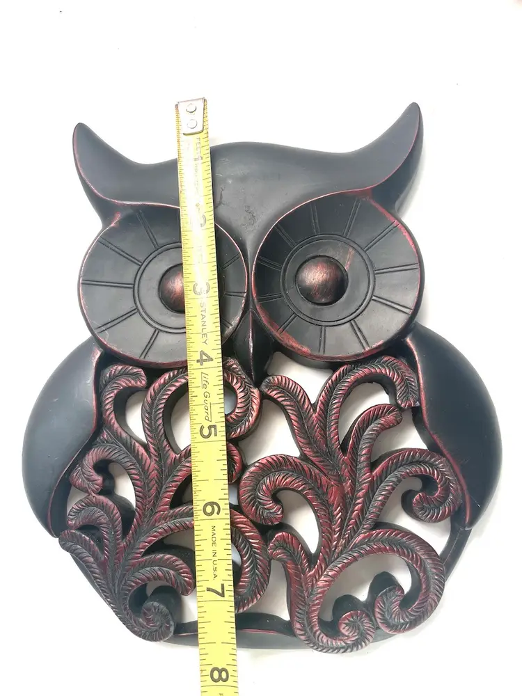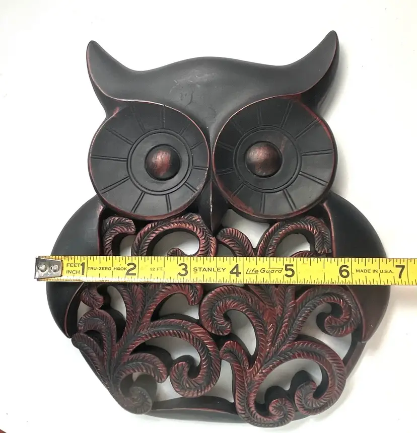 Fun find!!! Has a bronze look to it. In great condition. Some lite scratches I zoomed in on for you as they are hard to see. Please view all of my pictures as the help me describe this beautiful owl wall art!!!