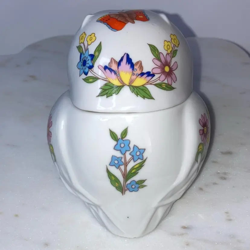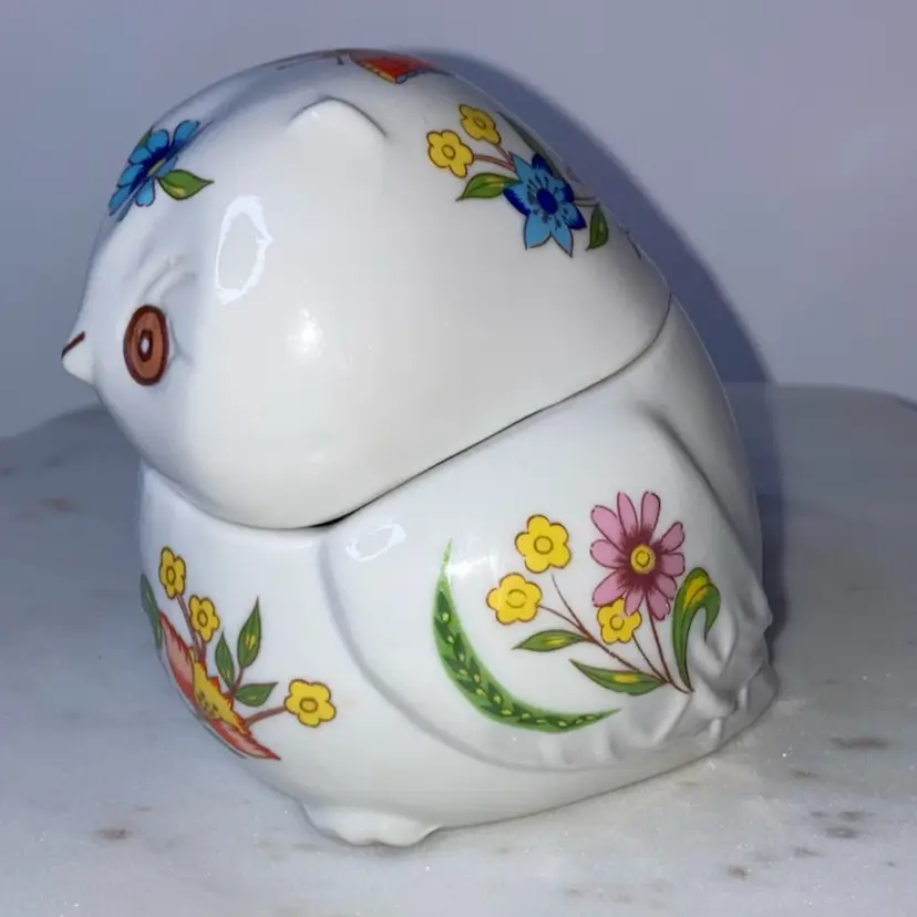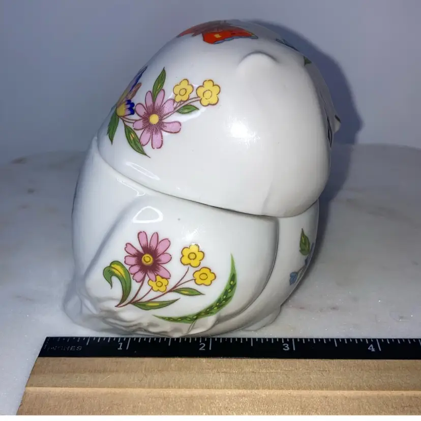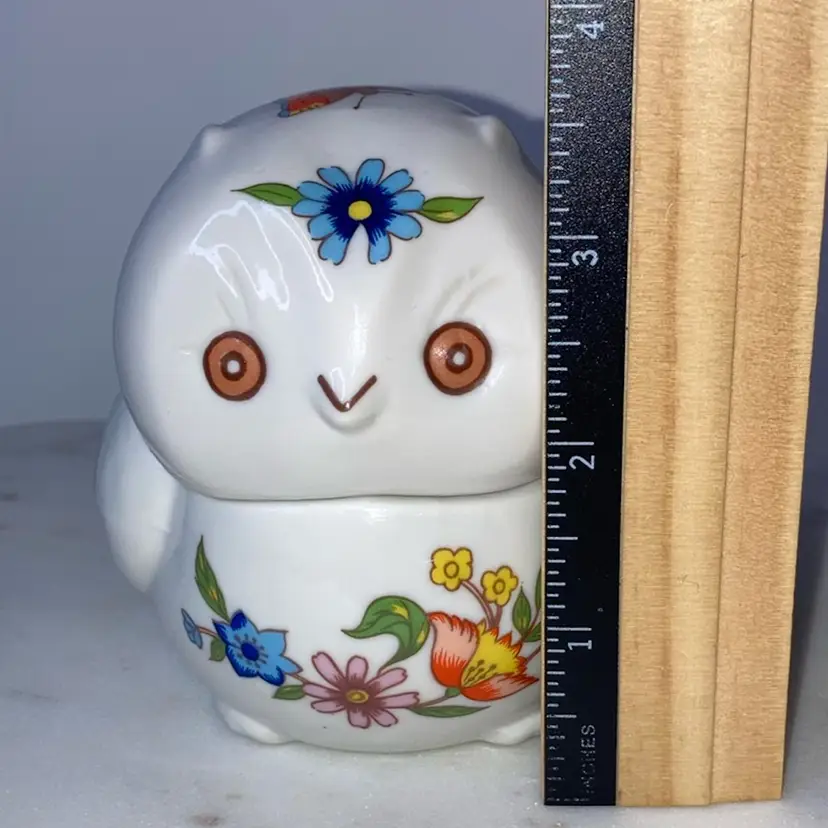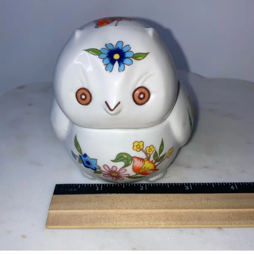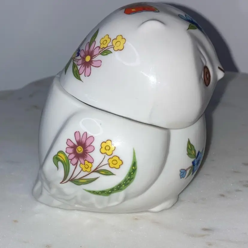 Owl With Florals Trinket Box! 4” Long x 3” Wide x 3 1/2” Tall! 1 Tiny Chip On End Of Tail! See Pic! NEW to District? Enter code Michel42 into your wallet prior to your first purchase and save $5 off of $10 or more! Thank you for checking out my items! Give me a Follow and I'll Follow you back! I do combine shipping and refund for any shipping overages!