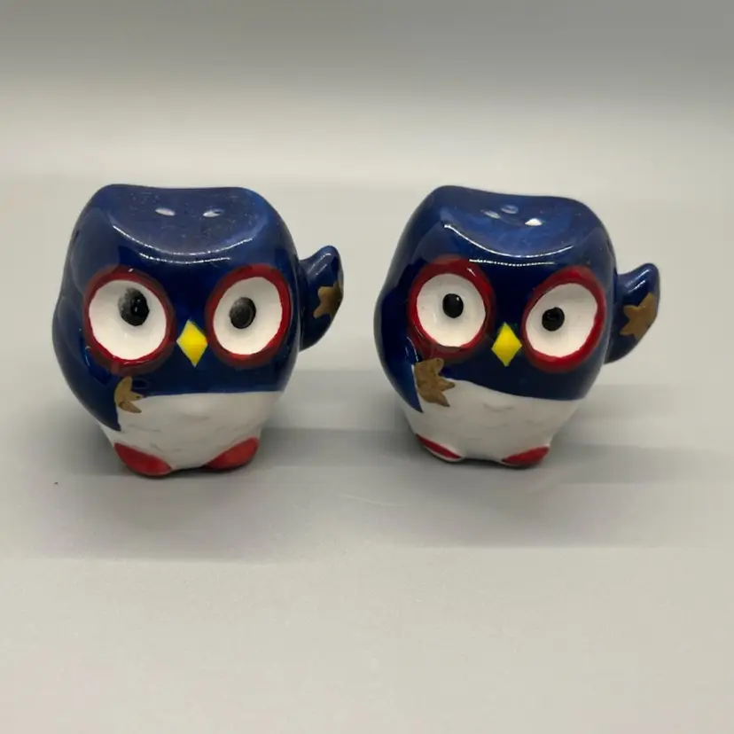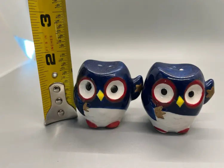You are buying a used set of patriotic owl salt and pepper shakers w/stops. Please see photos for overall size and condition. Please let me know if you would like any additional photos. Package will be mailed within 2 days of receiving payment. Thanks.