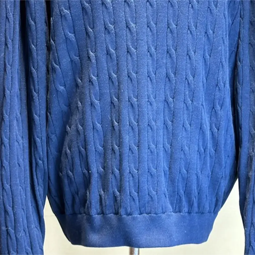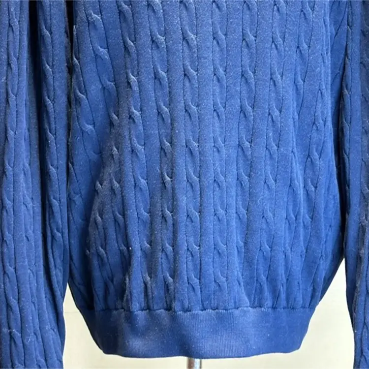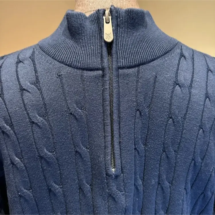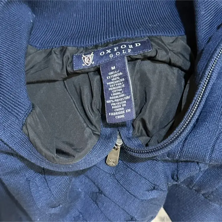 Oxford Golf Lined Sweater M 1/4 Zip Pullover Long Sleeve Navy Blue Cable Knit