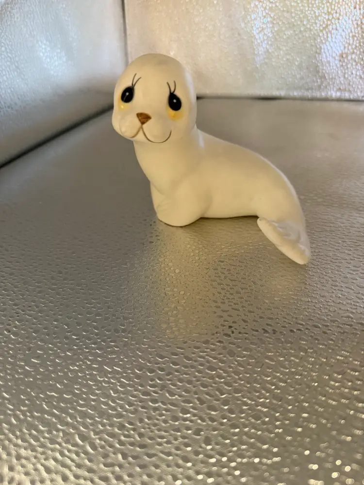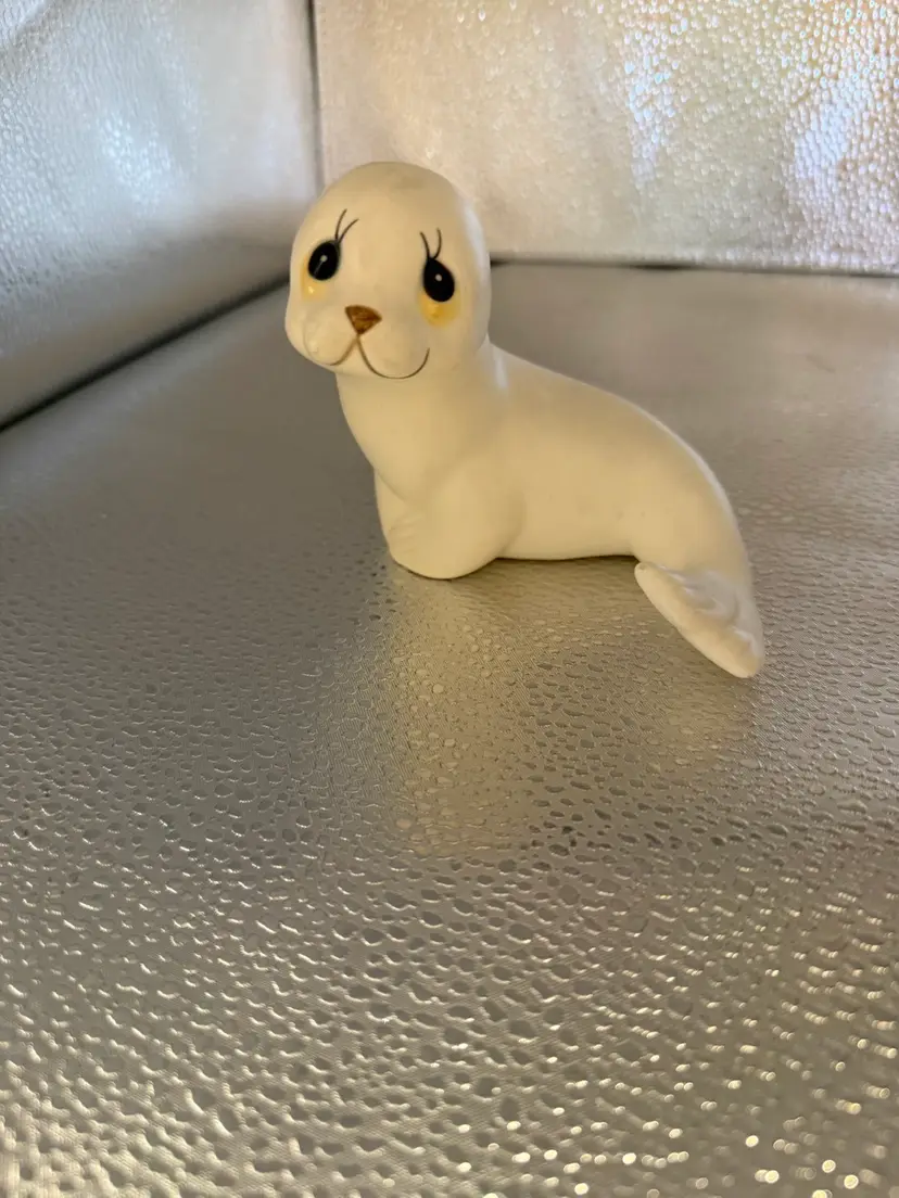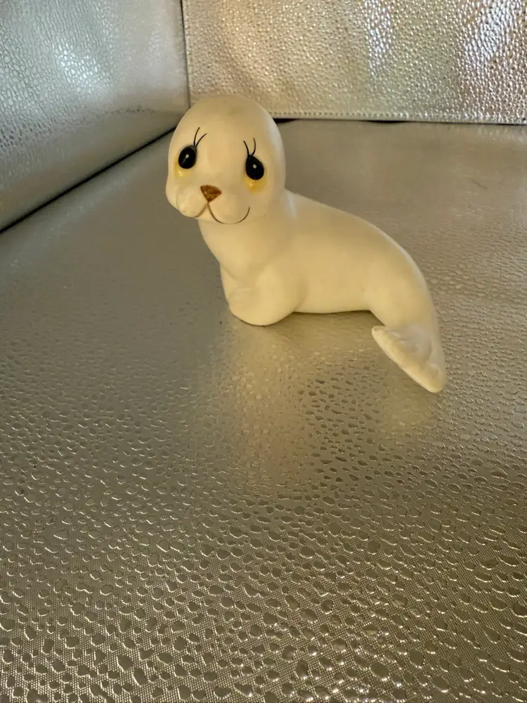 White seal missing its baby. Give this adorable seal a home . It’s a kichy seal but it would look cute in a child’s bedroom.