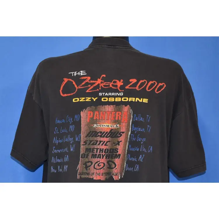 25.5x27, This sweet Y2K shirt commemorates Ozzfest 2000, which featured Pantera, Godsmack, Incubus, Static-X, P.O.D., Methods of Mayhem, Queens of the Stone Age.