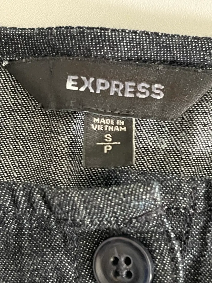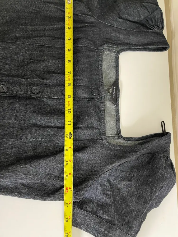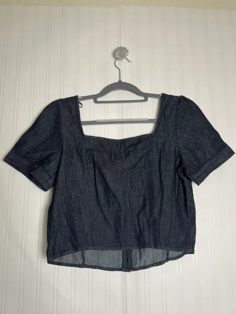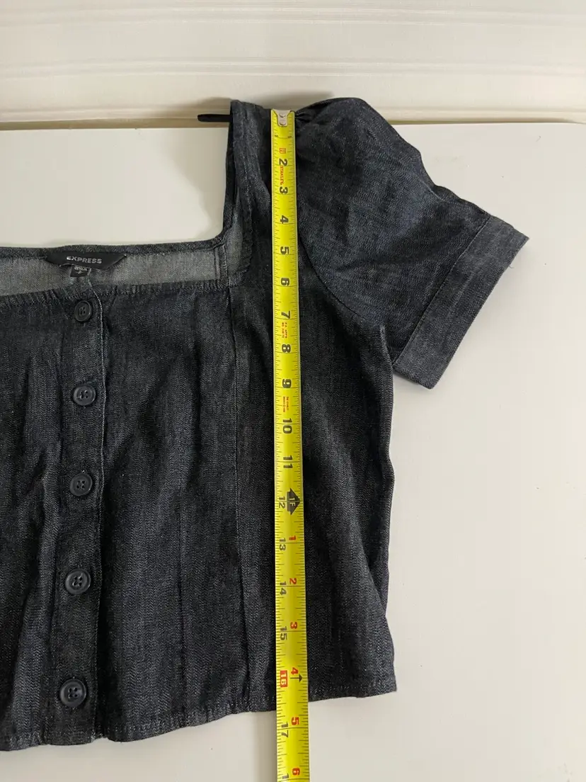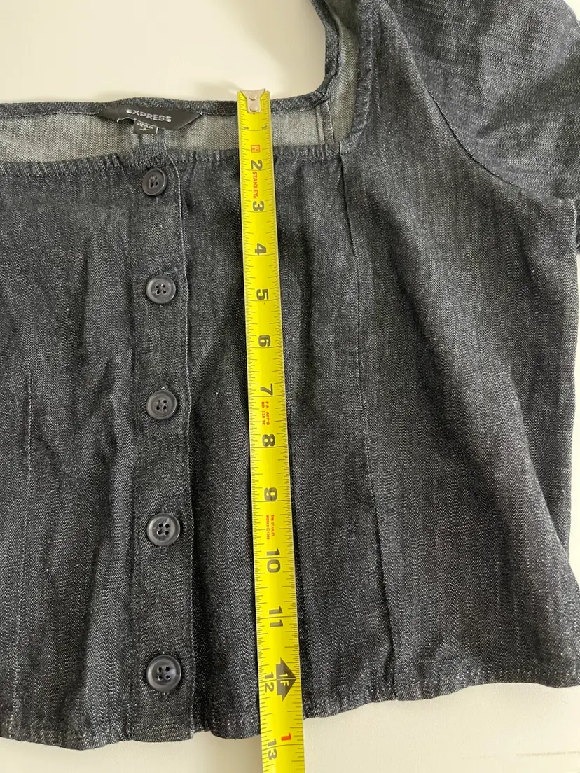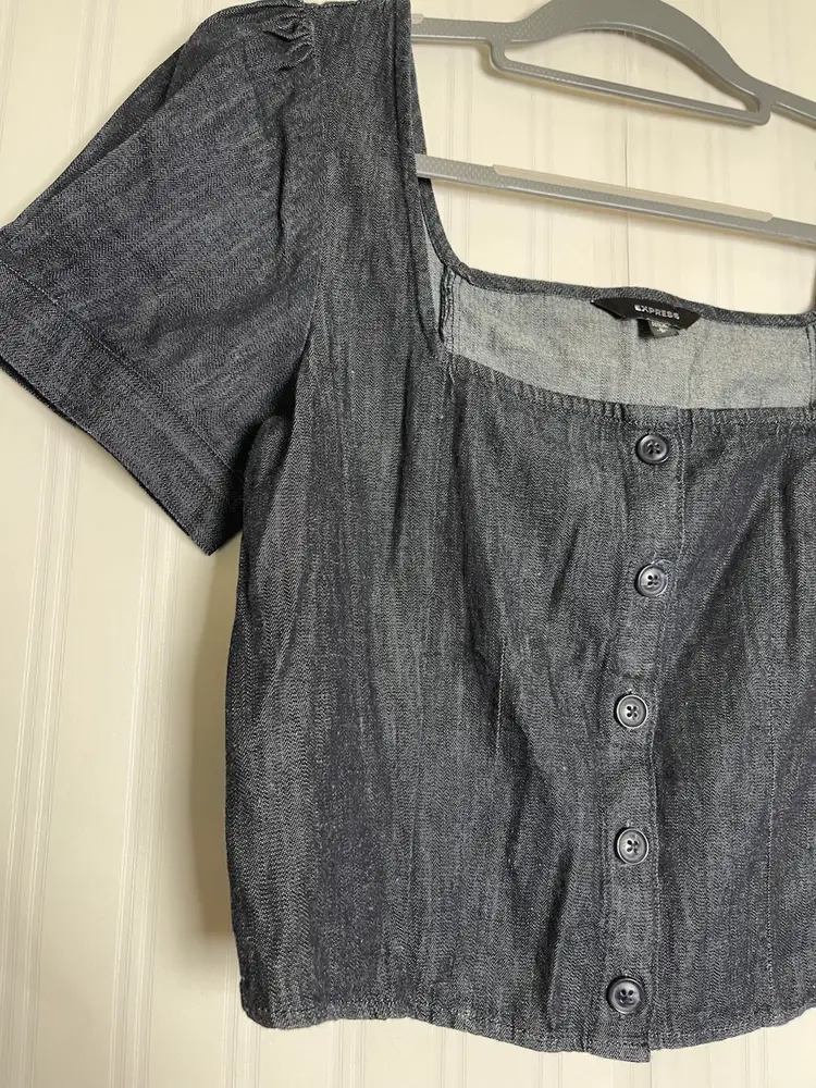 Express Women's Denim Square Neck Crop Blouse Blue S Chic Boho Feminine