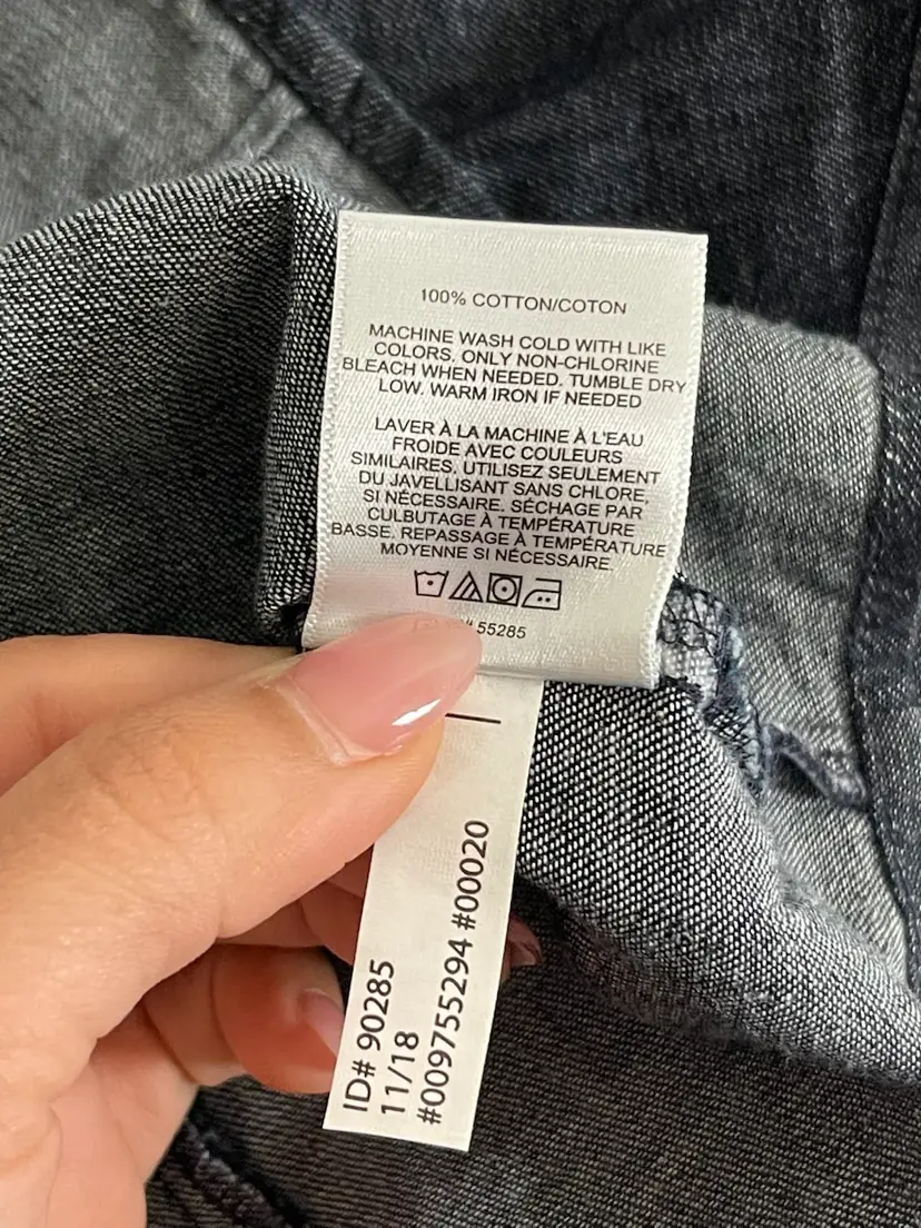 Short sleeve Lightweight denim, no stretch Front button closure Balloon puff sleeve Dark Blue