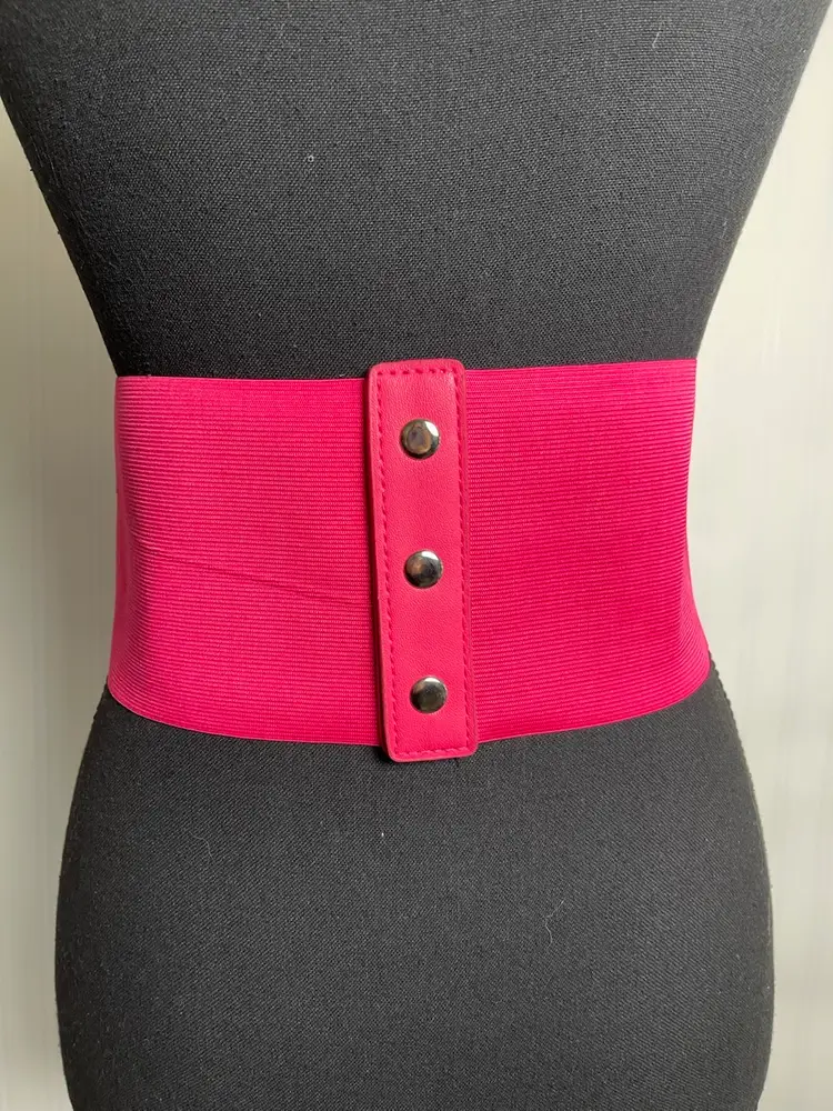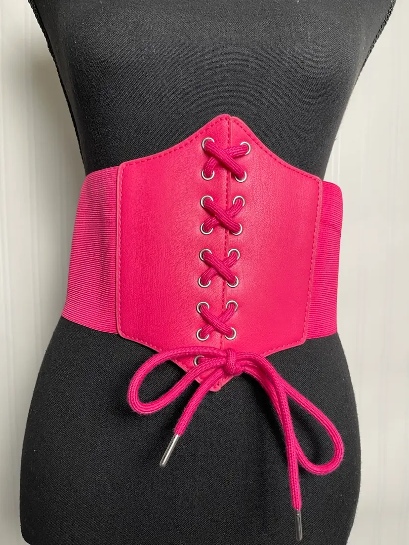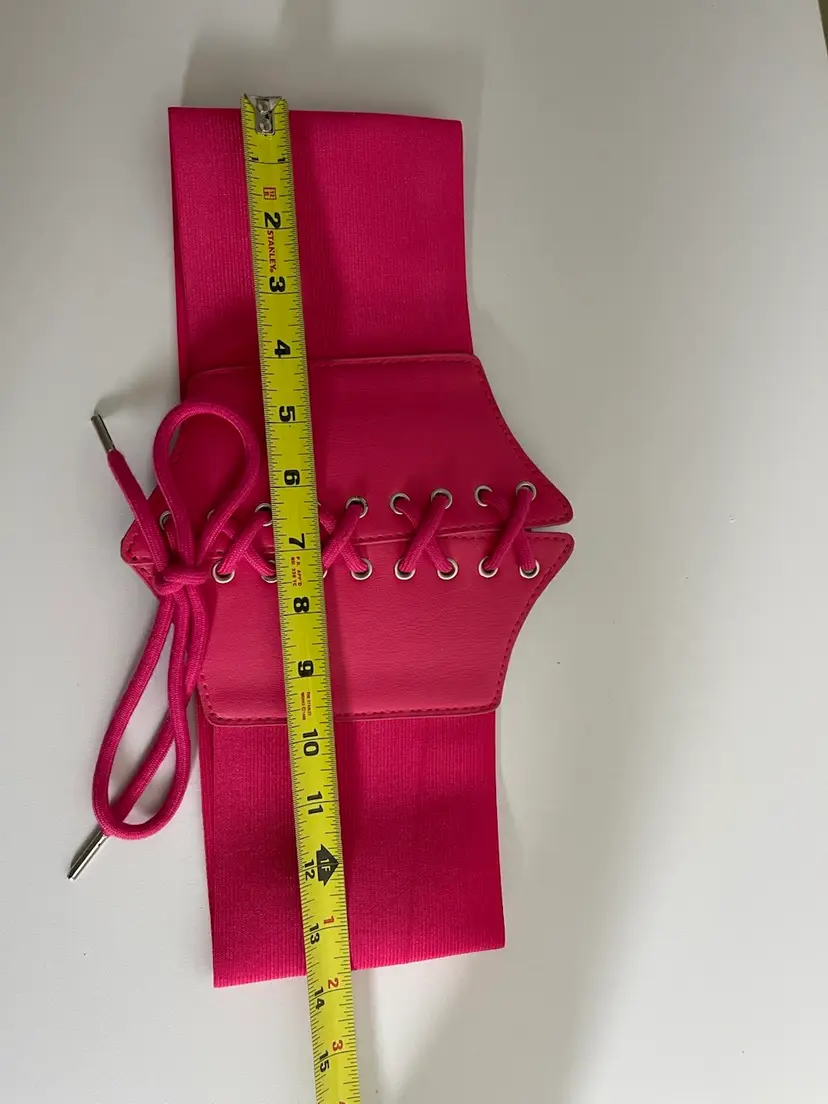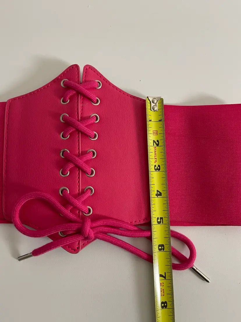 Womens Lace-up Cinch Belt Tied Corset Elastic Waist Belt Hot Pink S Whimsey Goth Used in excellent condition, like new. Missing size tag, please see measurments Stretch Back clip closure Wide Hot pink, elastic