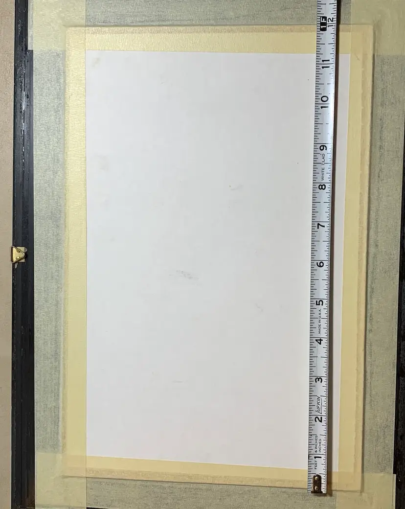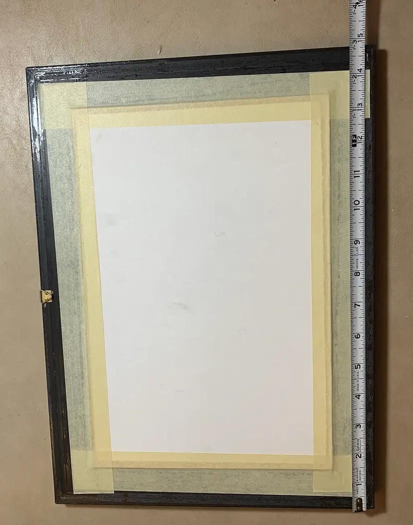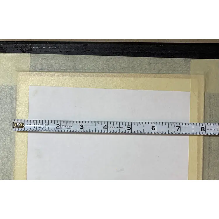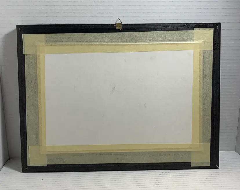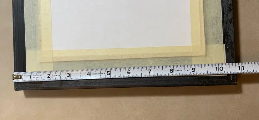 Picture is 8x12”. With wall hanger on the back. See all photos for details and measurements. Thanks for checking out my listings (plastic frame with glass)