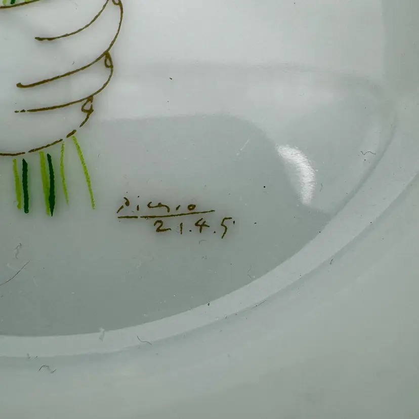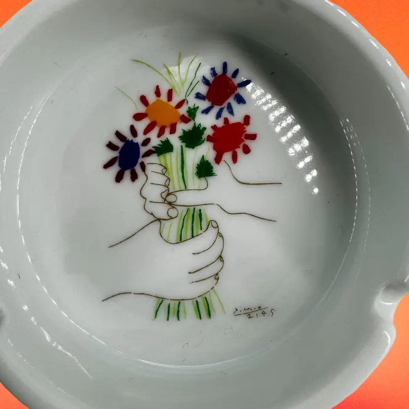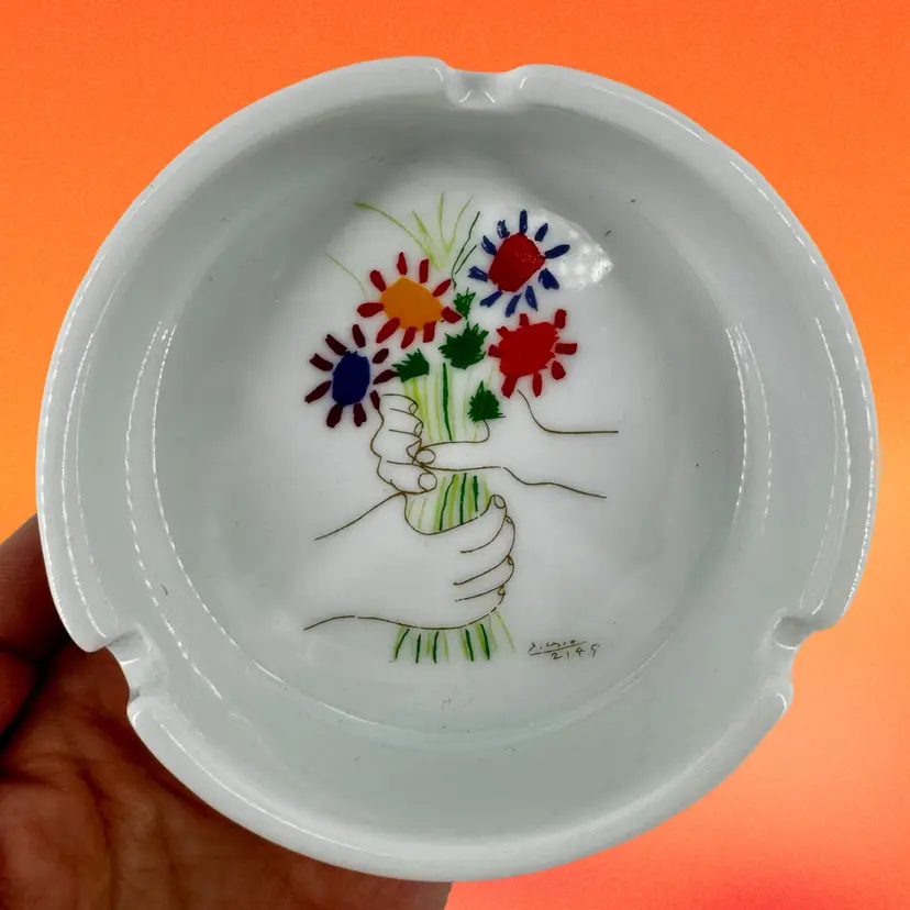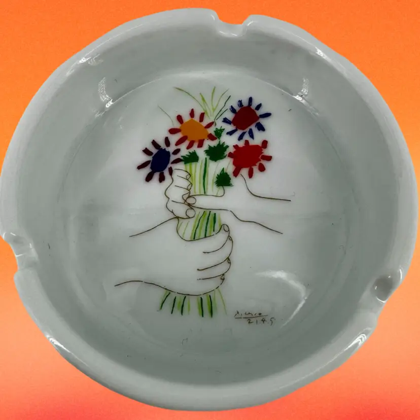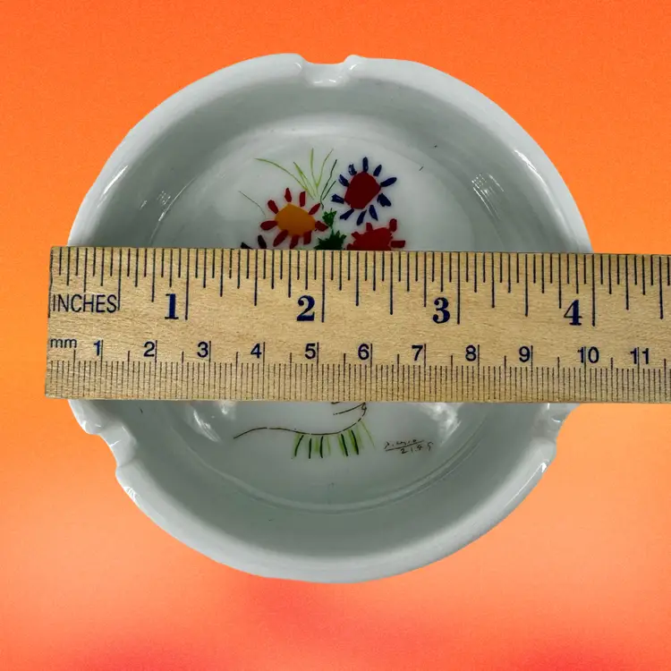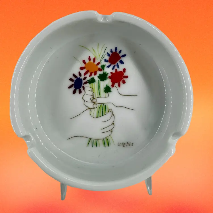 This ashtray comes from the Succession Picasso Collection from XL Art Productions. It was made in 1998 and is free of chips, scratches or cracks. It measures 4”Dia x 1.25”T