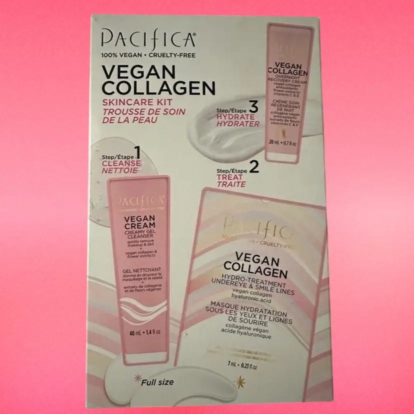 PACIFICA'S BEST SELLING VEGAN COLLAGEN SKINCARE COLLECTION featuring fan-favorites - Vegan Cream Creamy Gel Cleanser, Overnight Recovery Cream and full-size Hydro Treatment + Undereye Mask, this dream team of skin-loving ingredients is here to help fight the appearance of early aging, nourish and hydrate your skin.