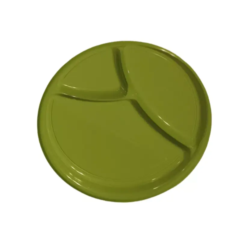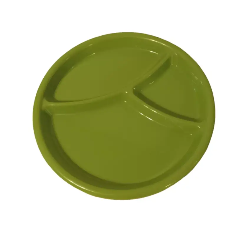 PackerWare Vintage Green Divided Plastic Plates Set of 6 Picnic plates. Made in USA. Plates are in good used condition. They do have some minor wear from cleaning.
