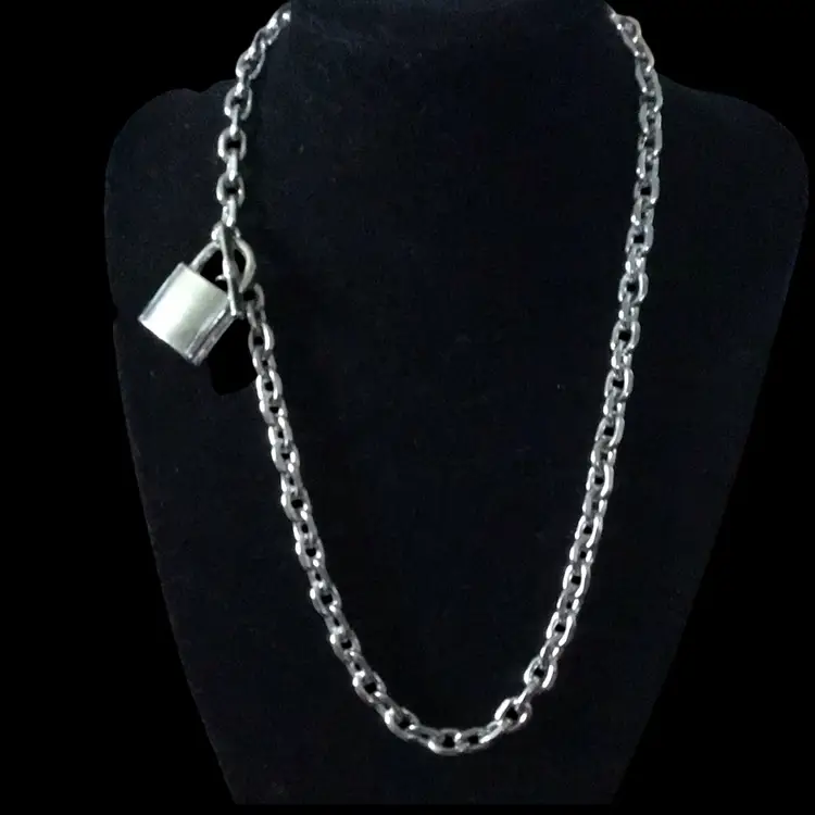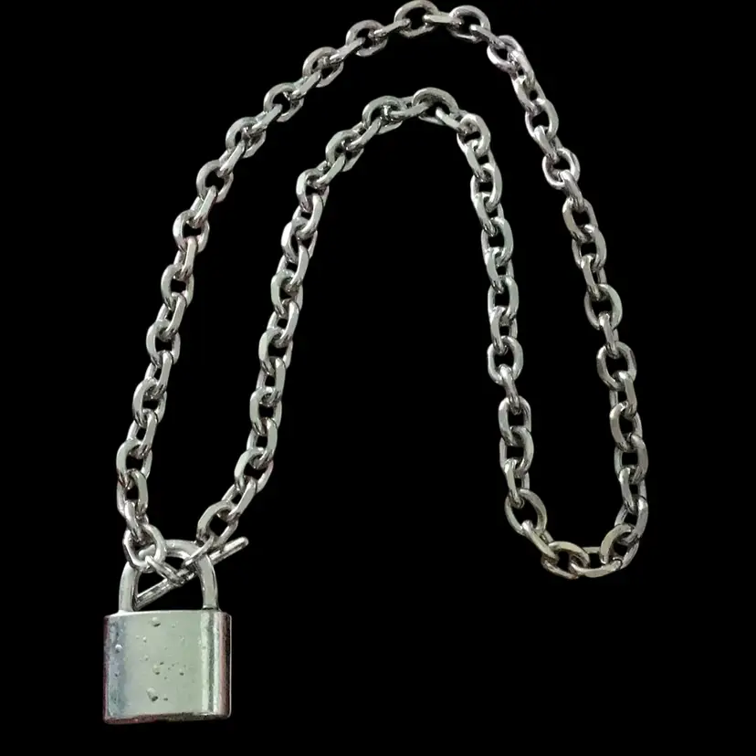 18” stainless steel chunky chain with lock pendant. #096