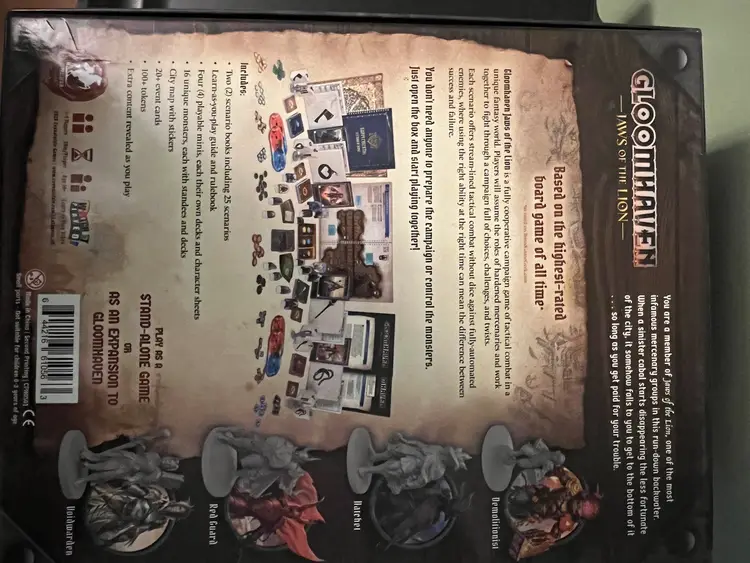 This auction is for a fully custom painted copy of #10 Rated Board Game of All Time – Gloomhaven: Jaws of the Lion. Game has been played through twice (once per character). Box has been reset to the start of the campaign so game can be played “Like New” directly out of the box. All game components are present and in good condition. Only "Legacy" type component is the map with stickers however, this is not required to track any progress. Map is included but stickers have been placed. A “reset” pack for the map can be bought if desired.