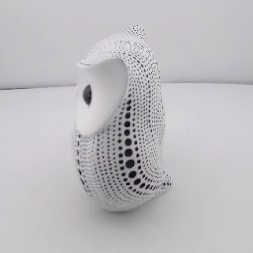 This is beautiful owl figurine made from painted wood. He is sleek and modern with no noted damage.