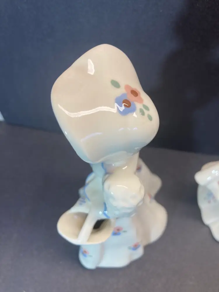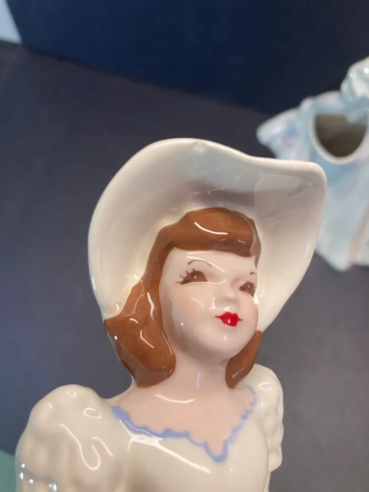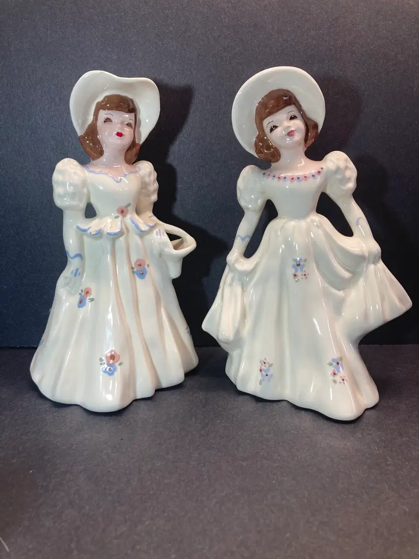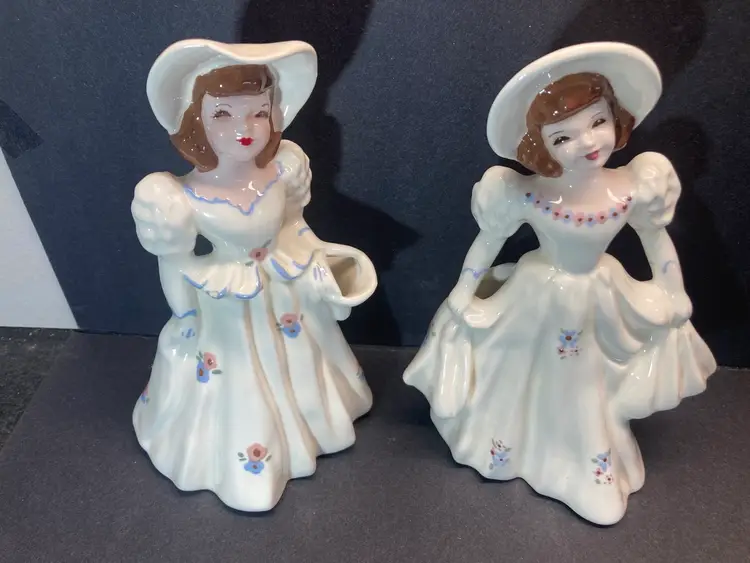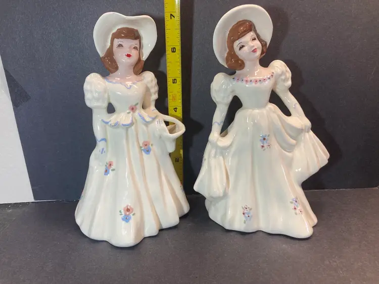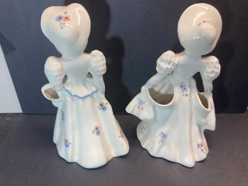 Pair (2) Florence of California Ceramics Girl Planter Vase Flowers Bonnets Measurements in pictures Pre-owned. No cracks or repairs. 2 small chips on one of figures (last 2 pics)