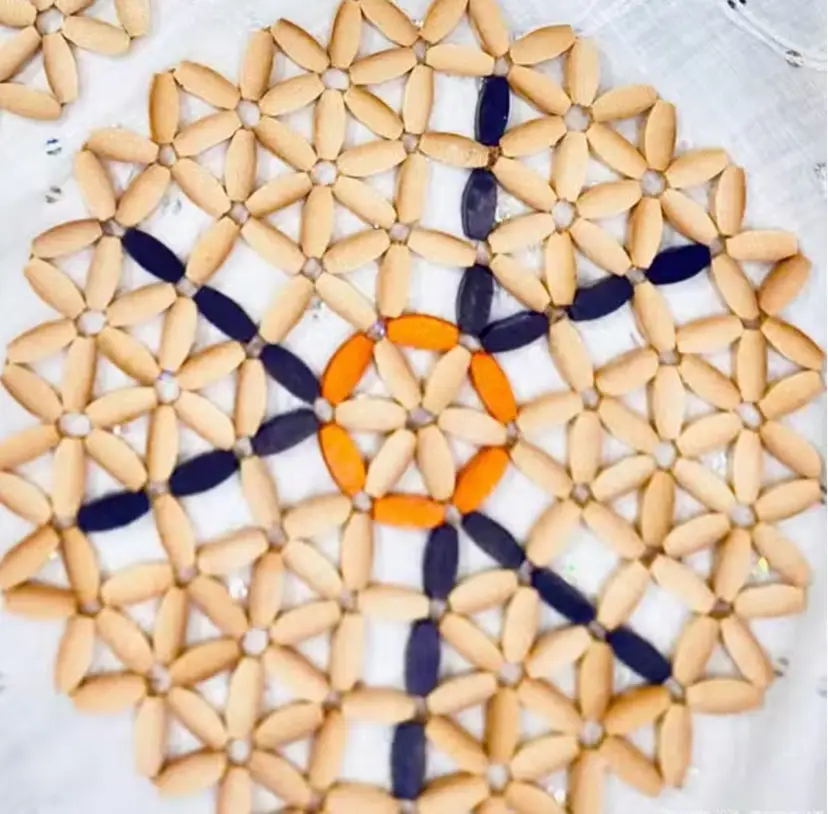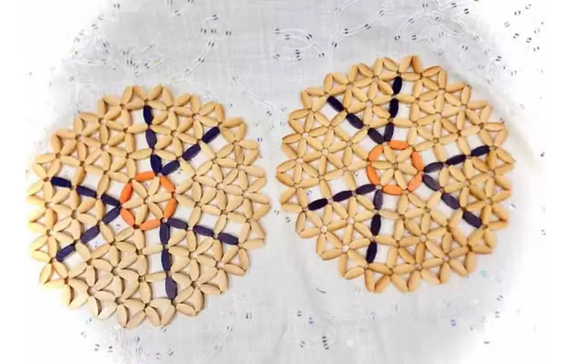 Pair- 9” Vintage Bamboo Trivets Wall Art Natural bamboo with Orange and Purple.