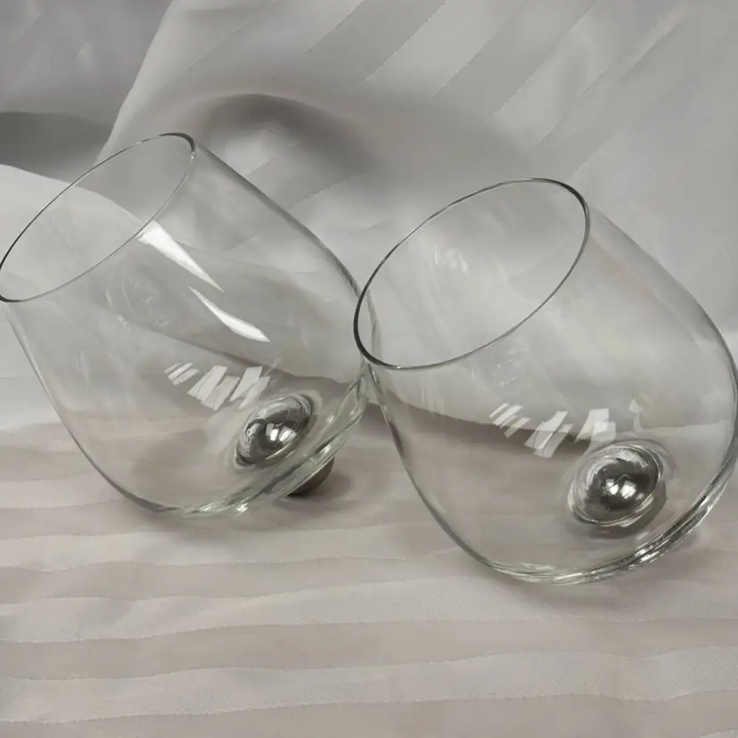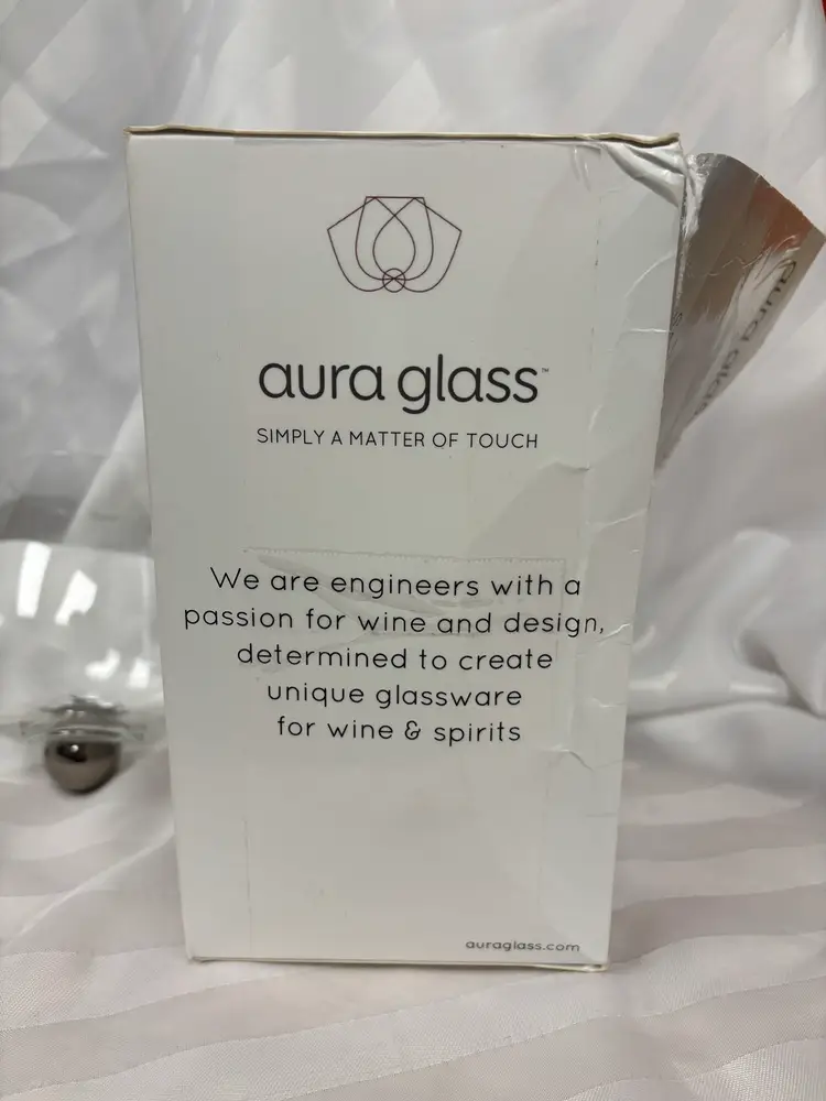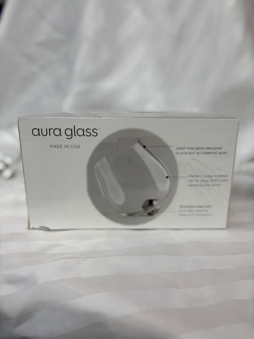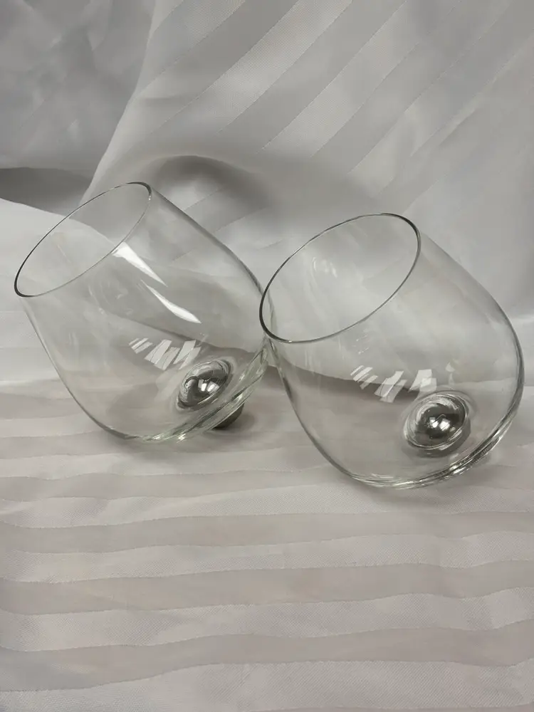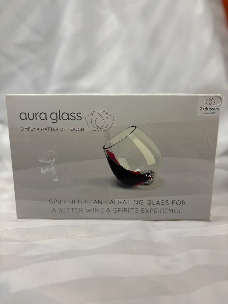 Aura Glass 14oz Stemless Aerating Wine Glasses that spin on a stainless steel ball! These were designed by engineers that love wine! They were preloved and ready for a new home!