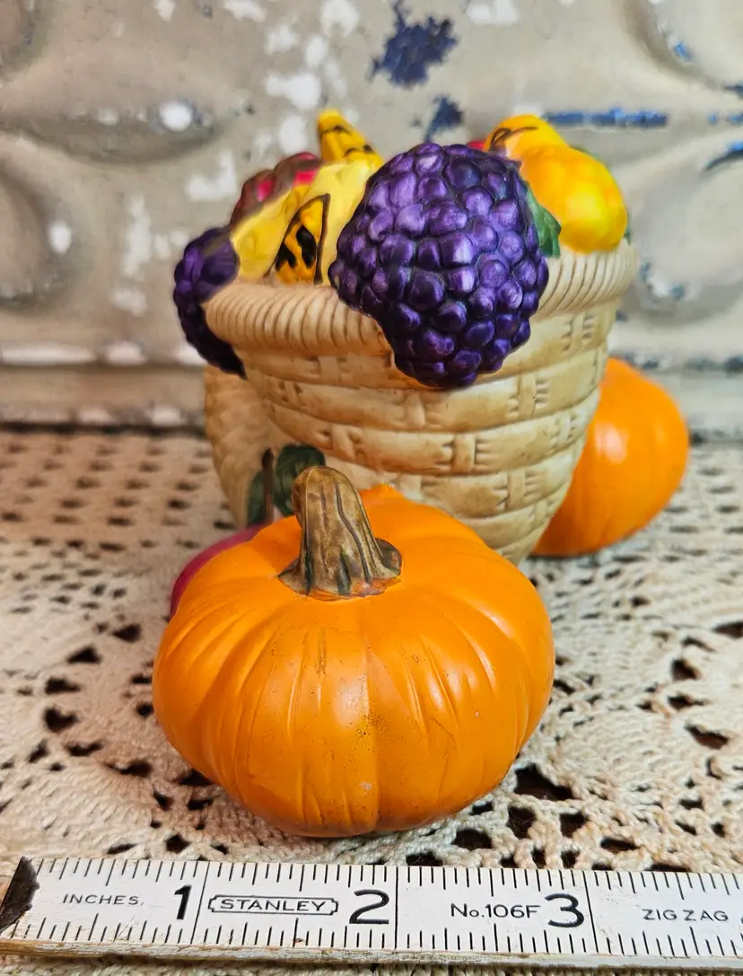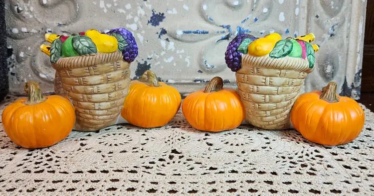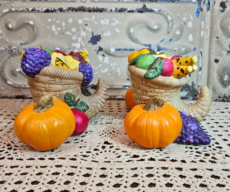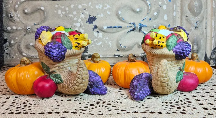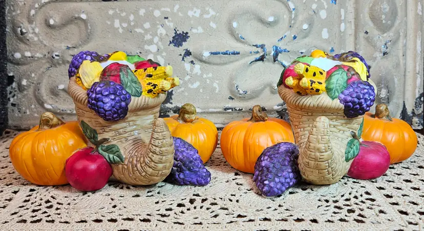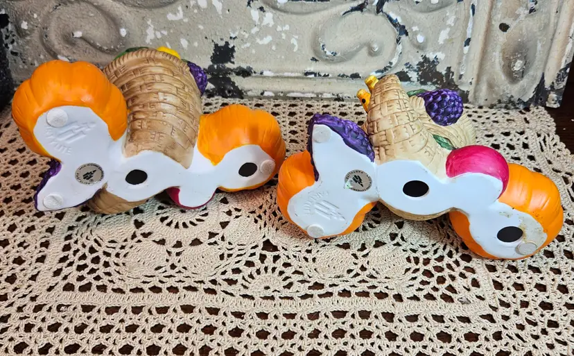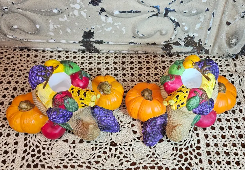 This pair of festive Thanksgiving candle holders is in excellent, used condition, with no appreciable chips, scratches or cracks. Measurements are depicted in the pictures of the item or listed in the description of the item. Please review the photos, as they are part of the item description. Please note that any props used in the photos are not included in the purchase, unless otherwise indicated.