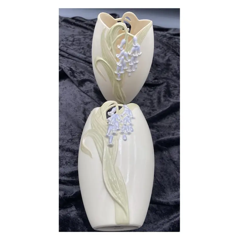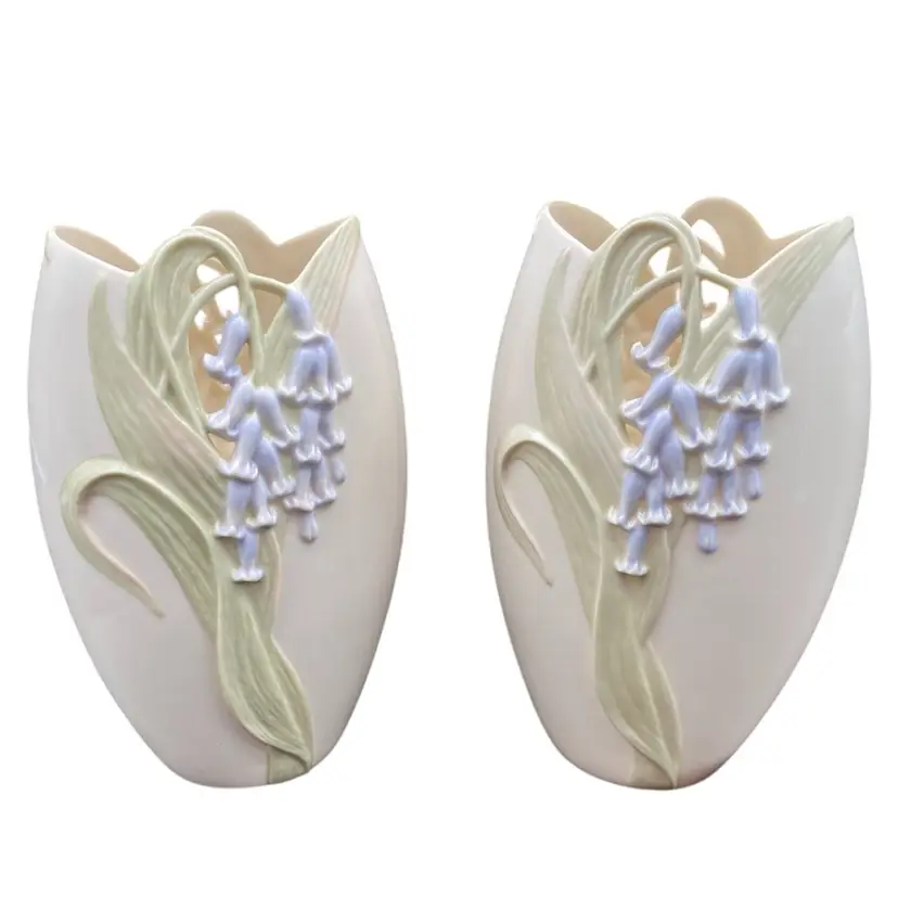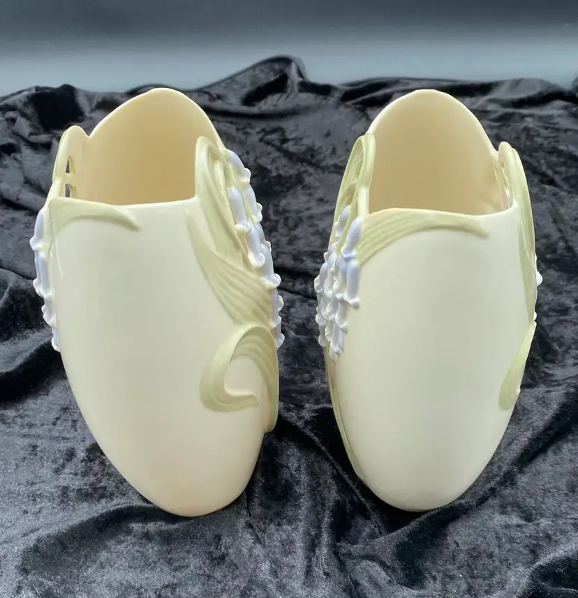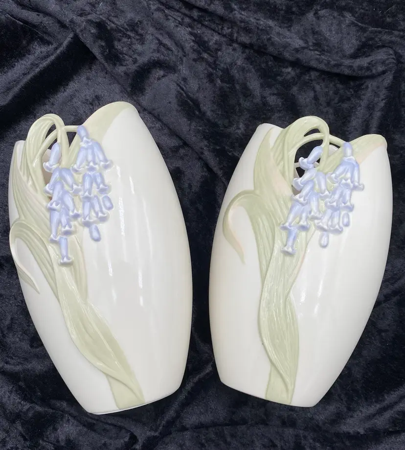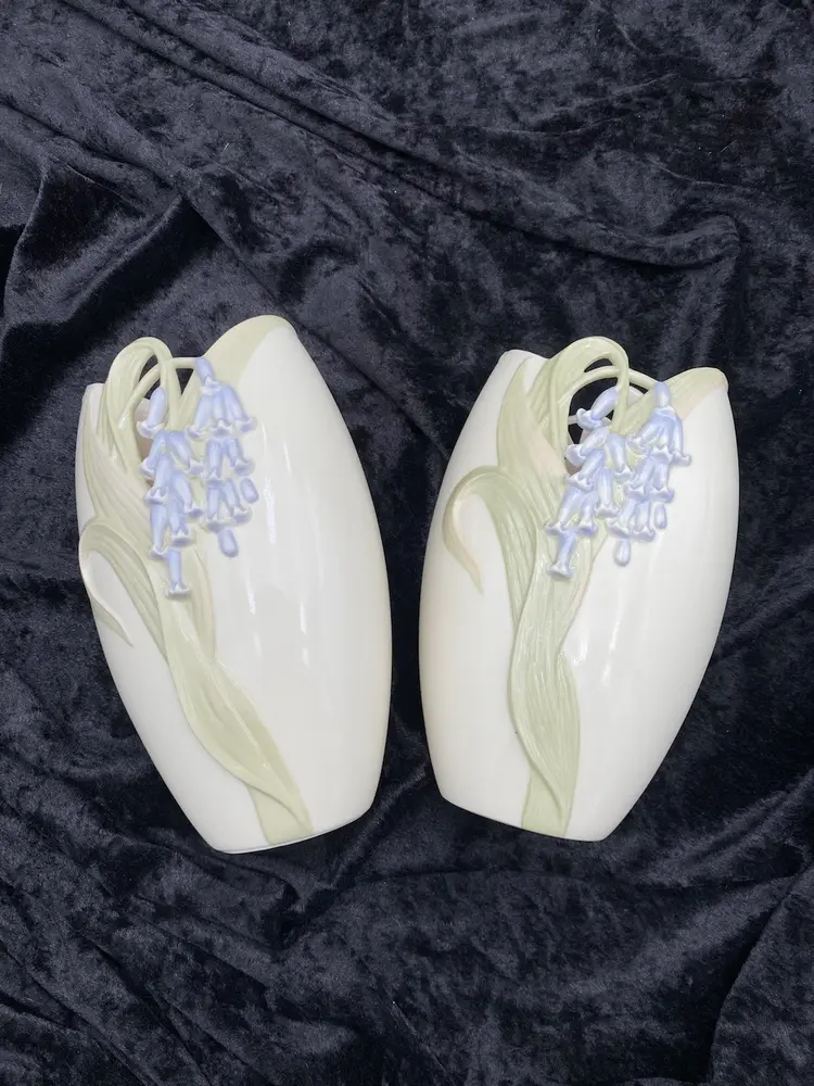 Add a touch of elegance to your home decor with this beautiful pair of Lenox vases from the Floral Blossoms Collection. Featuring the stunning "Blue Bells" pattern, these medium-sized porcelain vases are perfect for all occasions. The glossy finish and handcrafted design make them a unique addition to any collection. Made in Thailand in the late 20th century, these original vases are a must-have for collectors of decorative items. With an item length of 4.5 inches, height of 7.25 inches, and width of 3.5 inches, they are the perfect size for display in any room. The vases weigh 13.6 ounces as a pair.