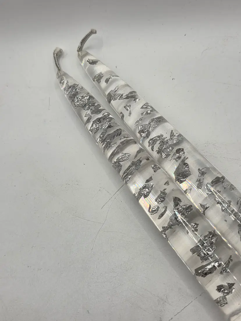 Pair of Vintage lucite candlesticks. 11" tall. Bottom round part is about 3/4" round.