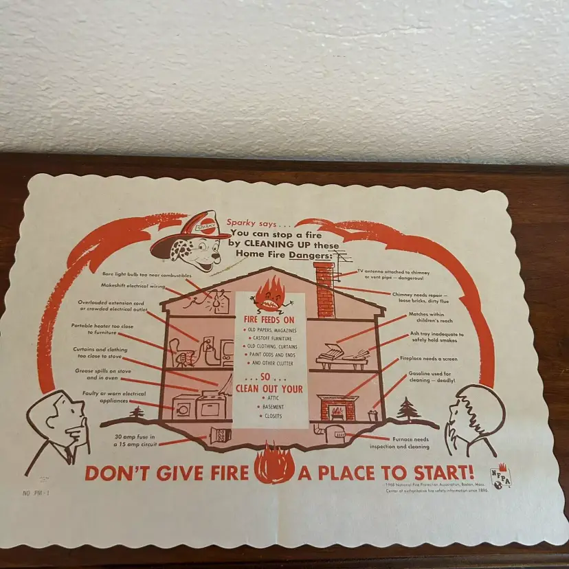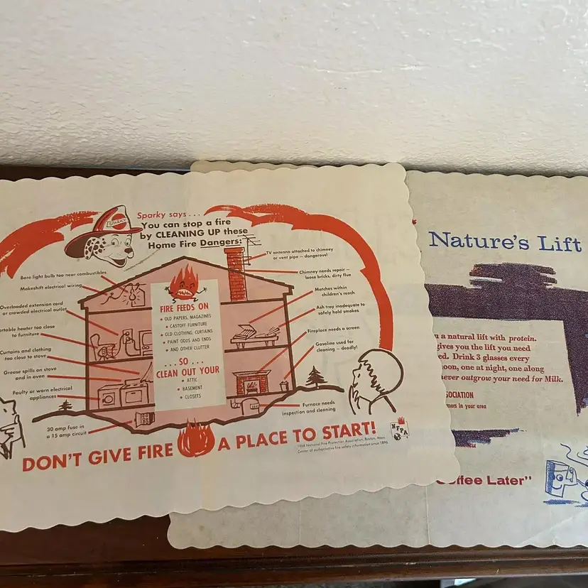 Pair Of 1960s Placemat Advertisement Fire Protection & Dairy Vintage Ephemera