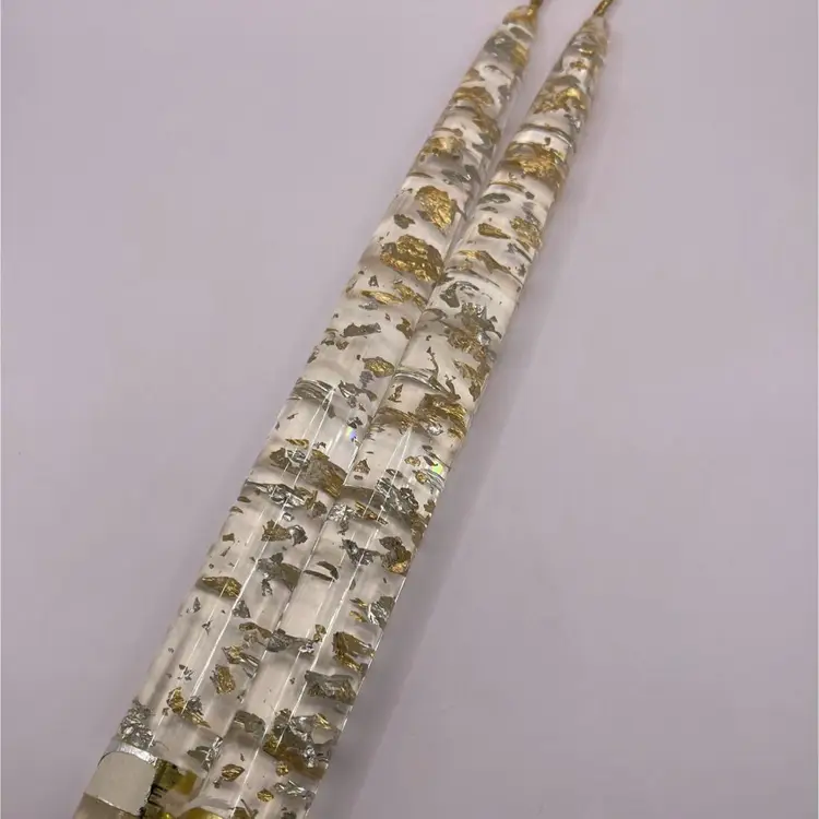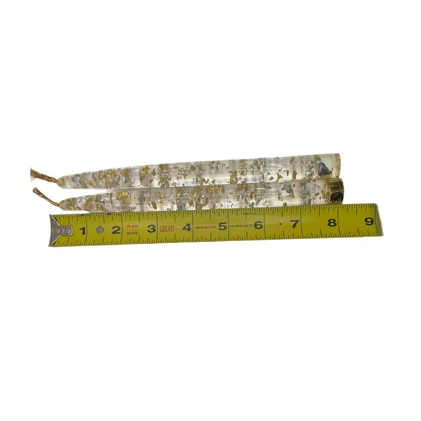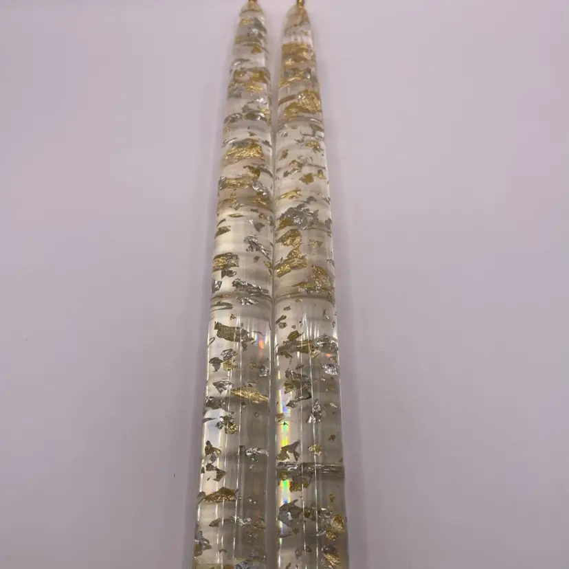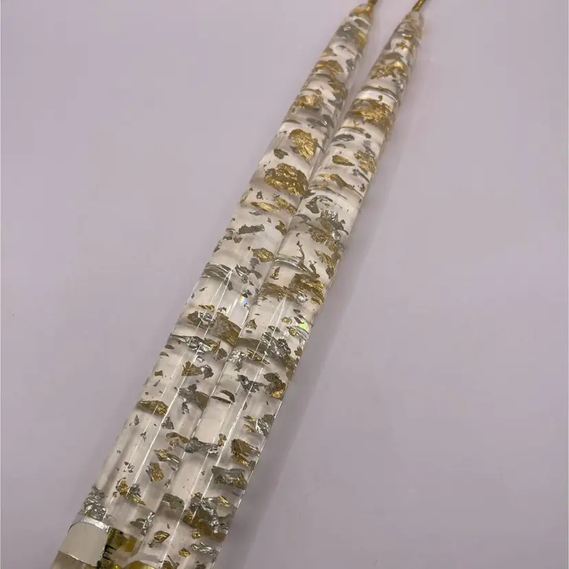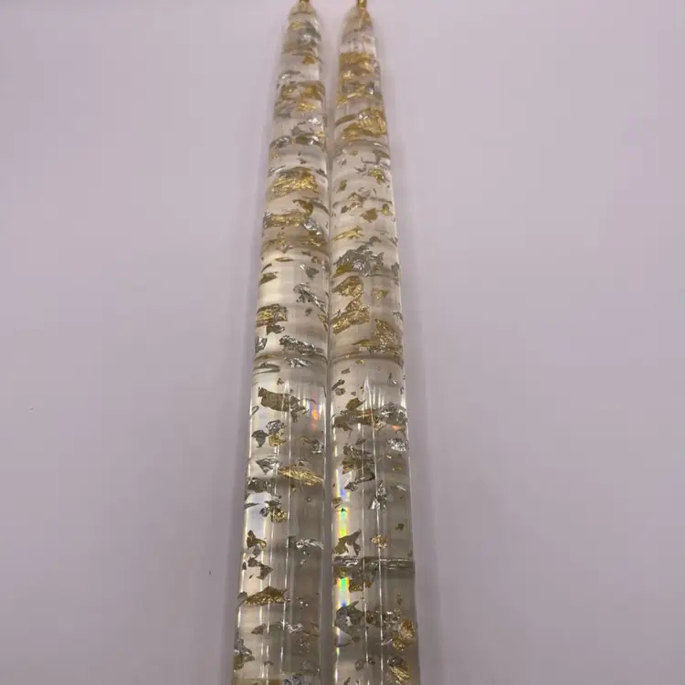 Pair of 8" Clear Lucite Candles w/ Gold and Silver Foil Flakes