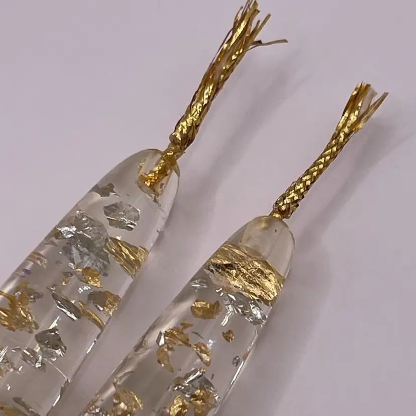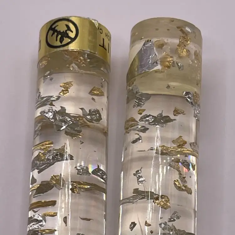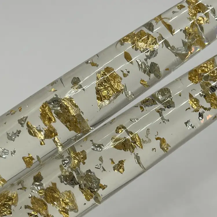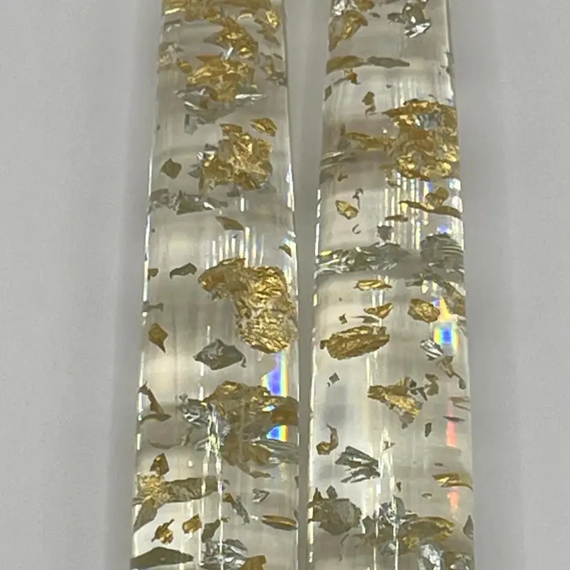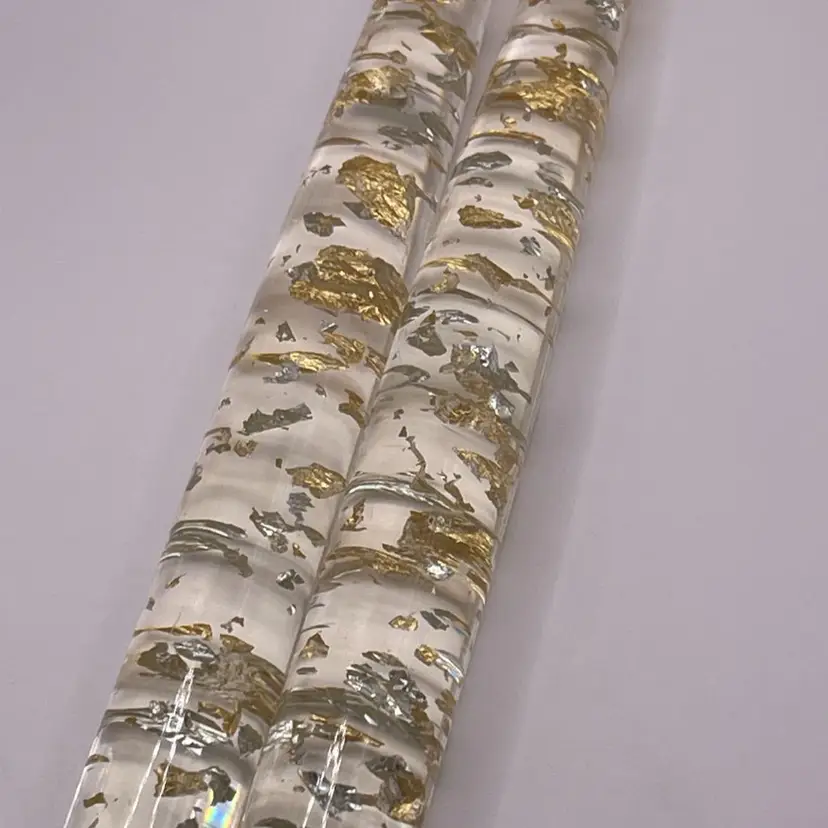 Pair of 8" Clear Lucite Candles w/ Gold and Silver Foil Flakes