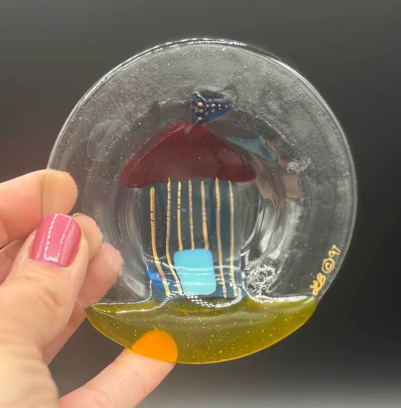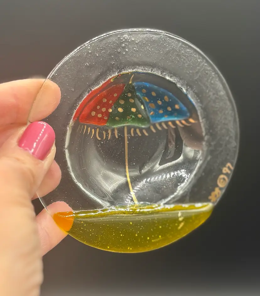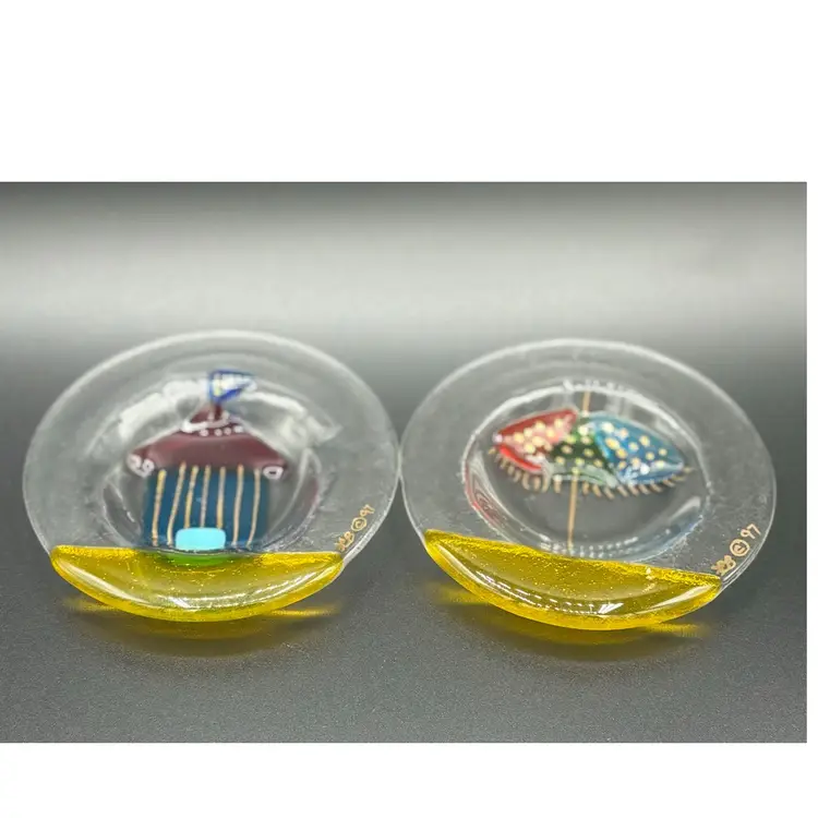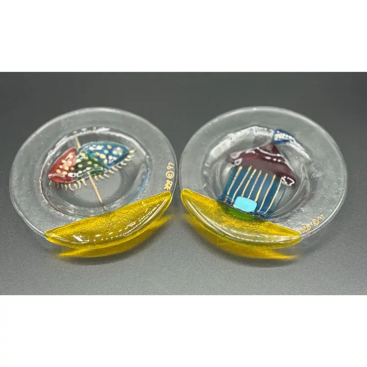 Sweet matching set. No chips or cracks. Signed LB ‘97. Approximately 3 3/4” diameter.