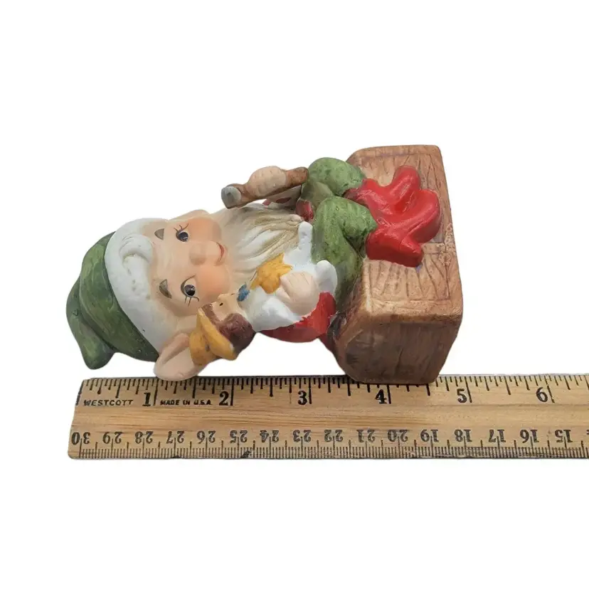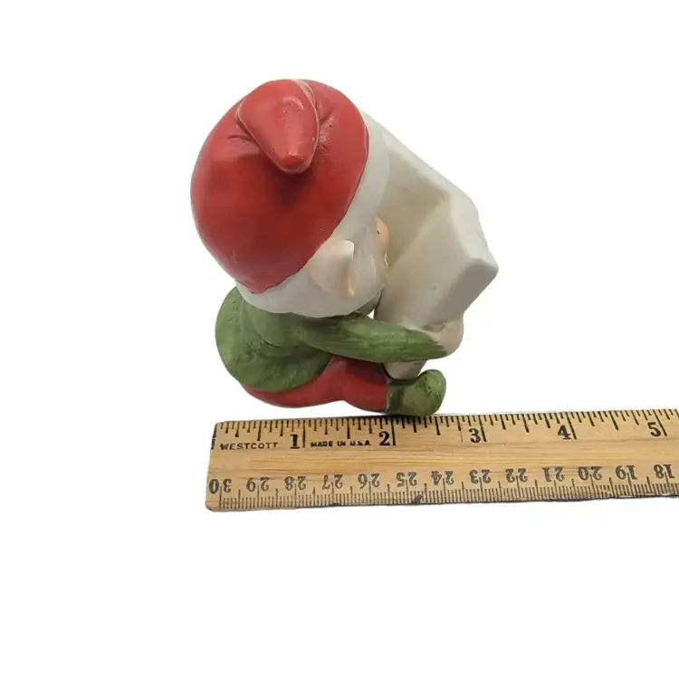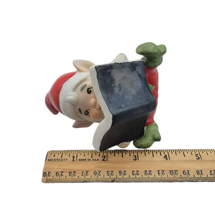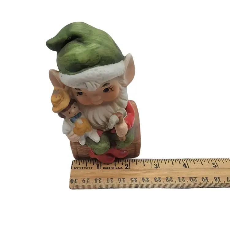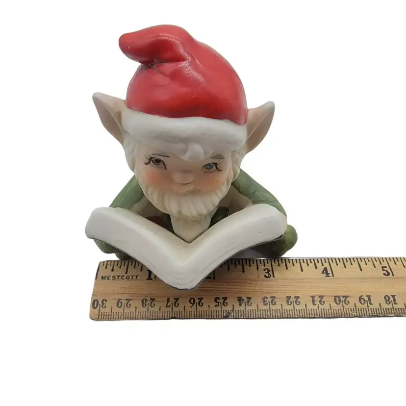 Measurement: approximately elf with doll is 4.5" tall; 1.75" wide; 2.25" long, the elf with book is 4" tall, 3.25" long, 2.5" wide.