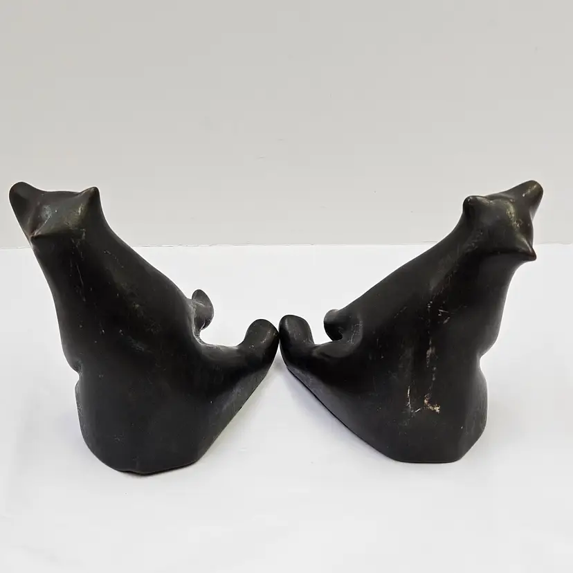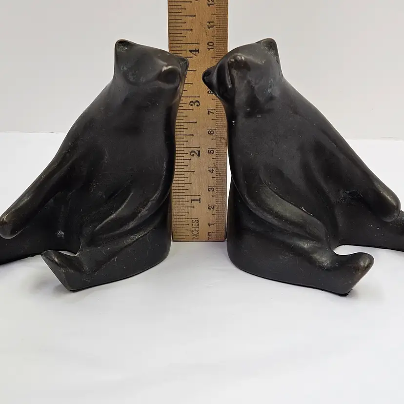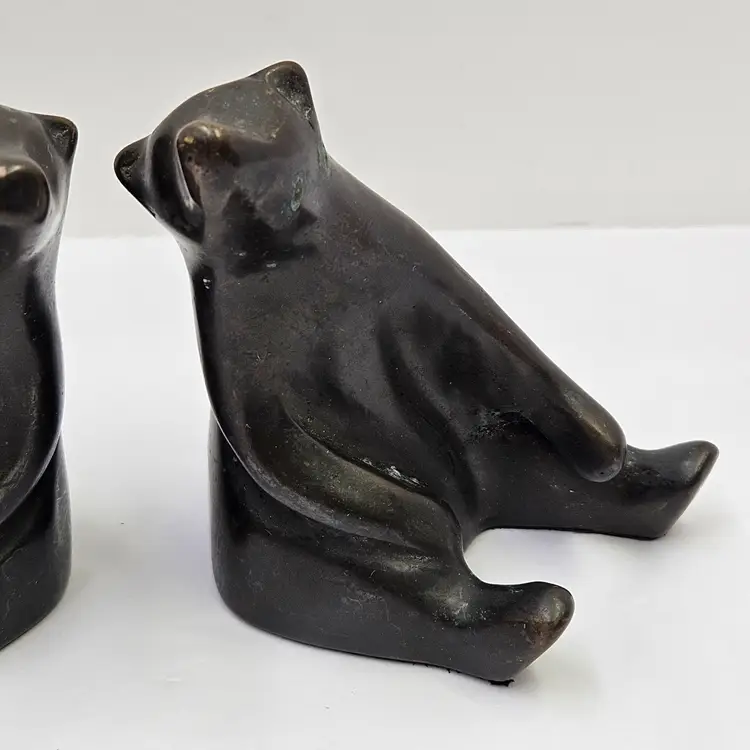 Cast bronze bears, some tarnishing/patina and scuffs.
