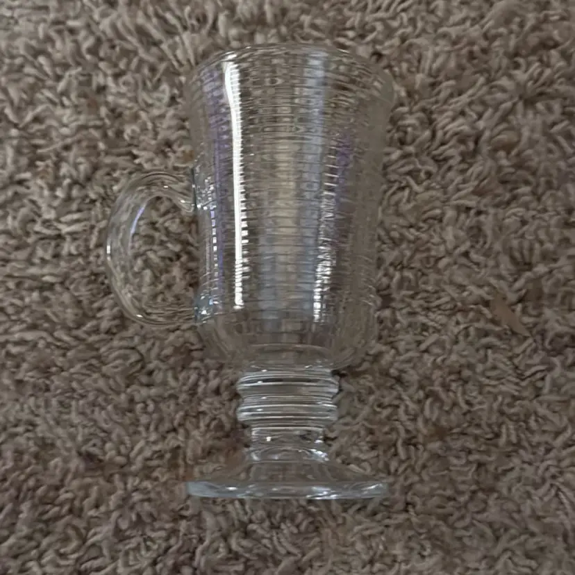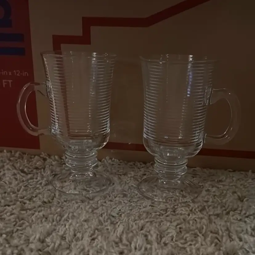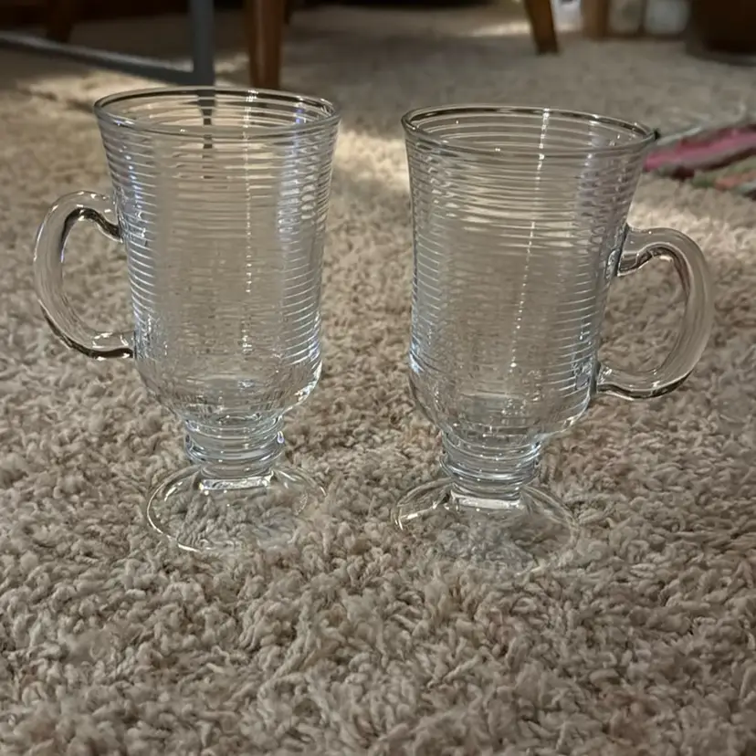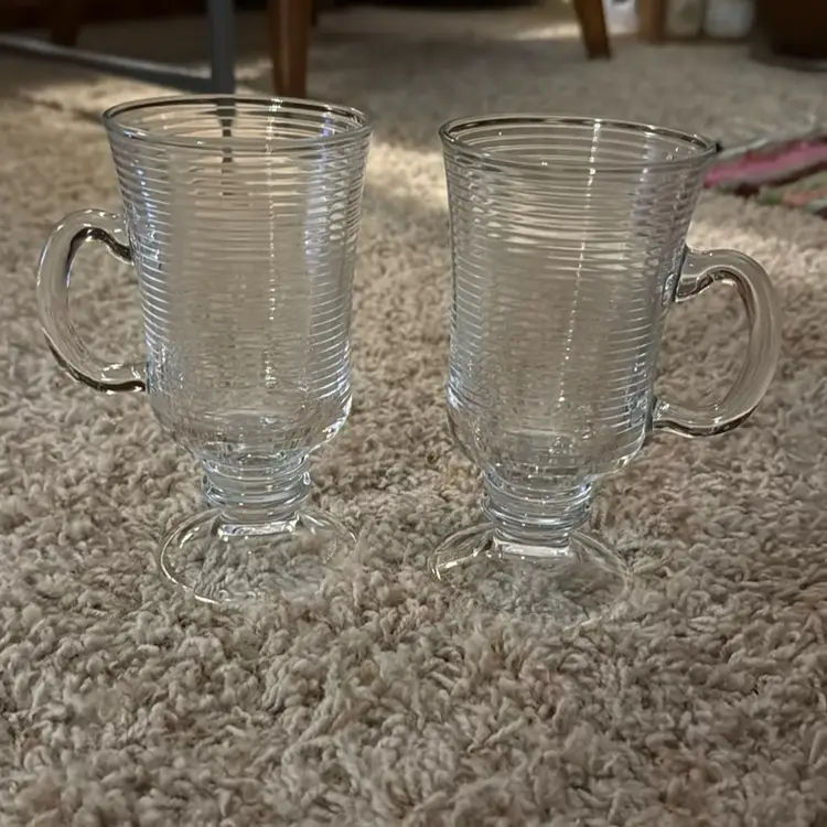 Pair of Clear Glass Ribbed Pedestal Mugs.